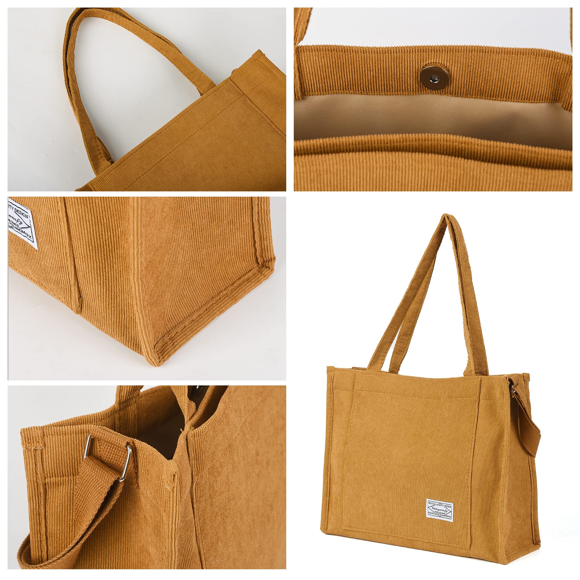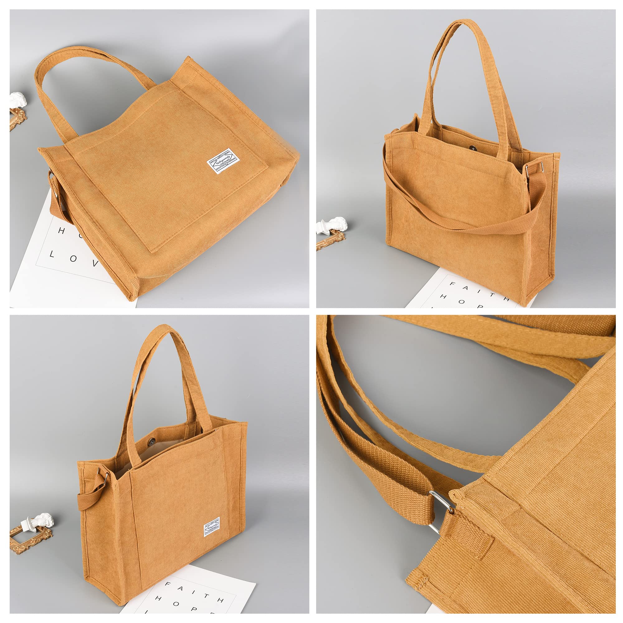 【Soft Material】This Corduroy Tote Bag for Women is made of high quality corduroy fabric and soft polyester lining inside, lightweight, durable and soft, giving you a comfortable carrying experience in various occasions