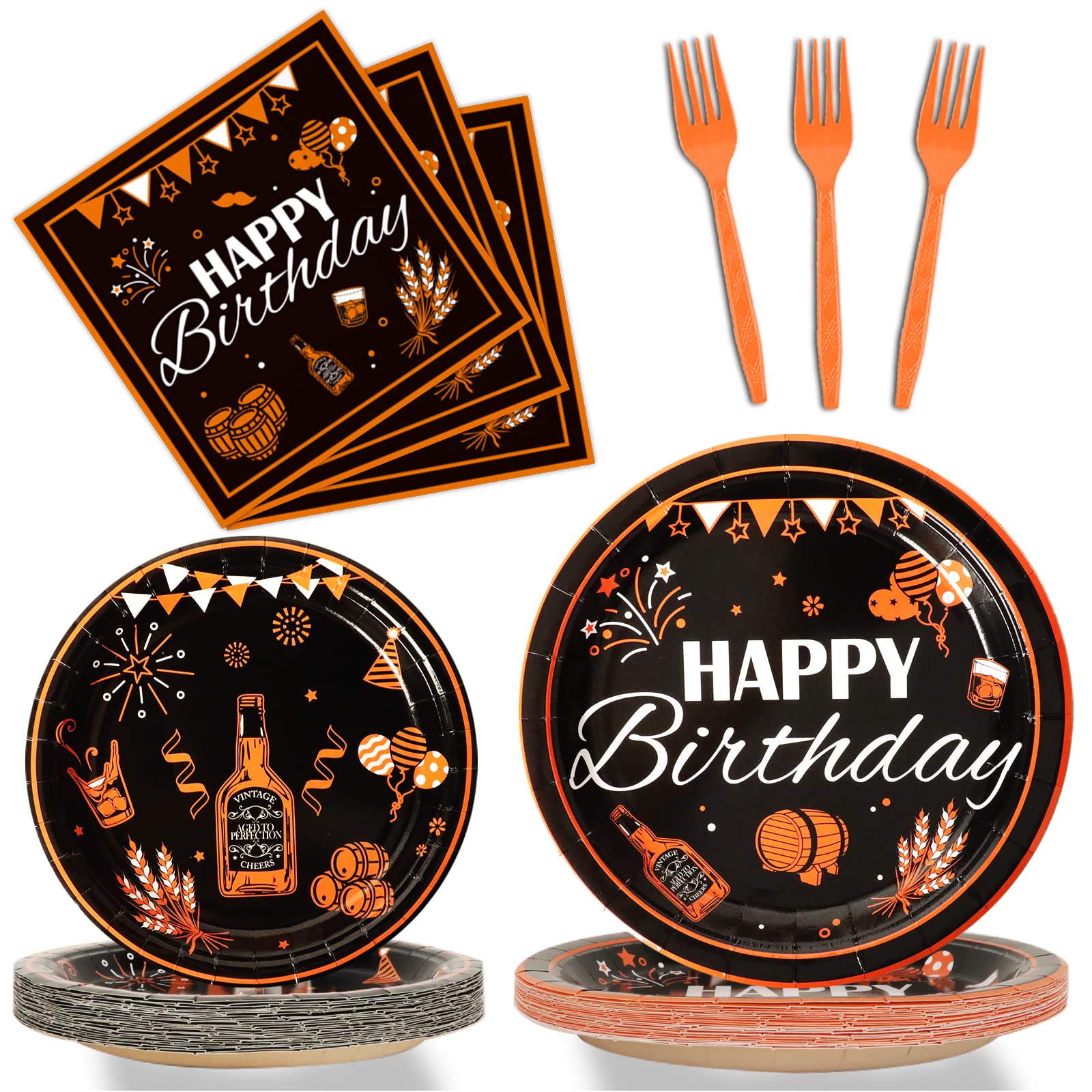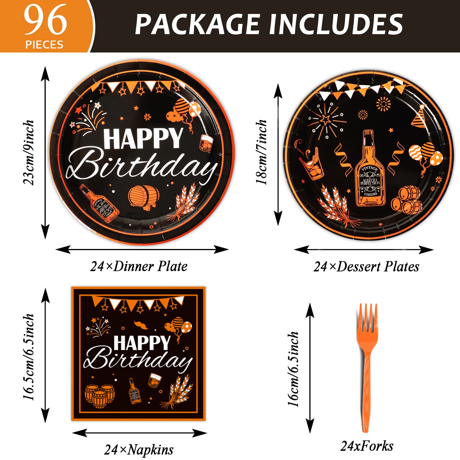 【Black Birthday Party Supplies】You will receive 24 pieces Black and Gold birthday party paper dinner plates of 9’’, 24 pieces plates of 7’’, 24 pieces black gold napkins of 6.5’’ and 24 plastic forks for each set that can serve 24 guests.