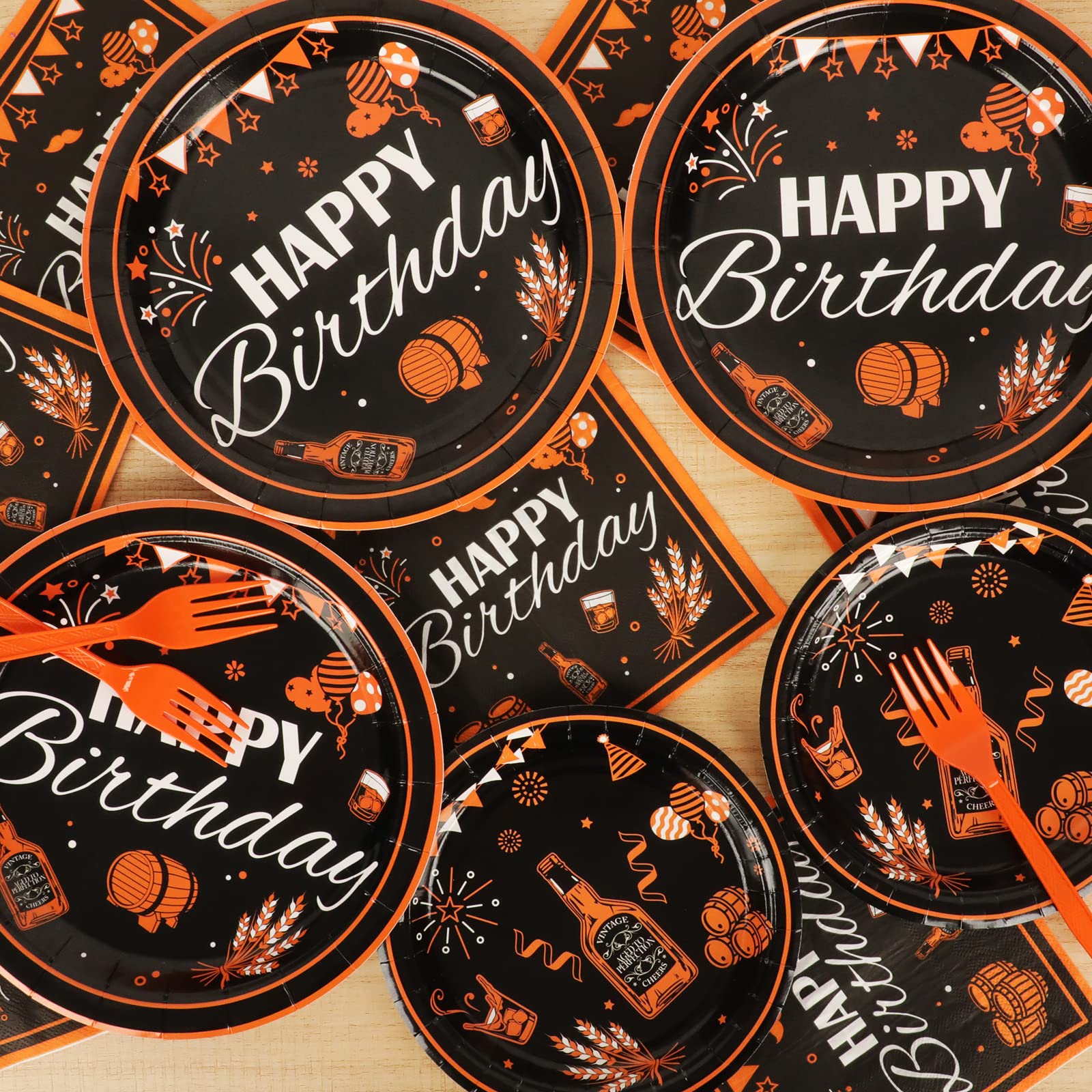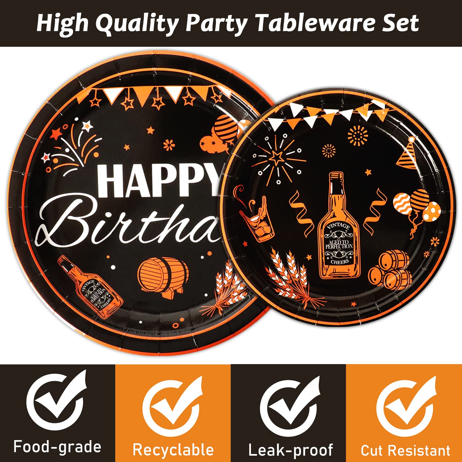 【Black Gold Design】Except for the fork, this aged to perfection theme party tableware set is all designed in new patterns. Decorating your party with these tableware kit can make your party full of the festival atmosphere.
