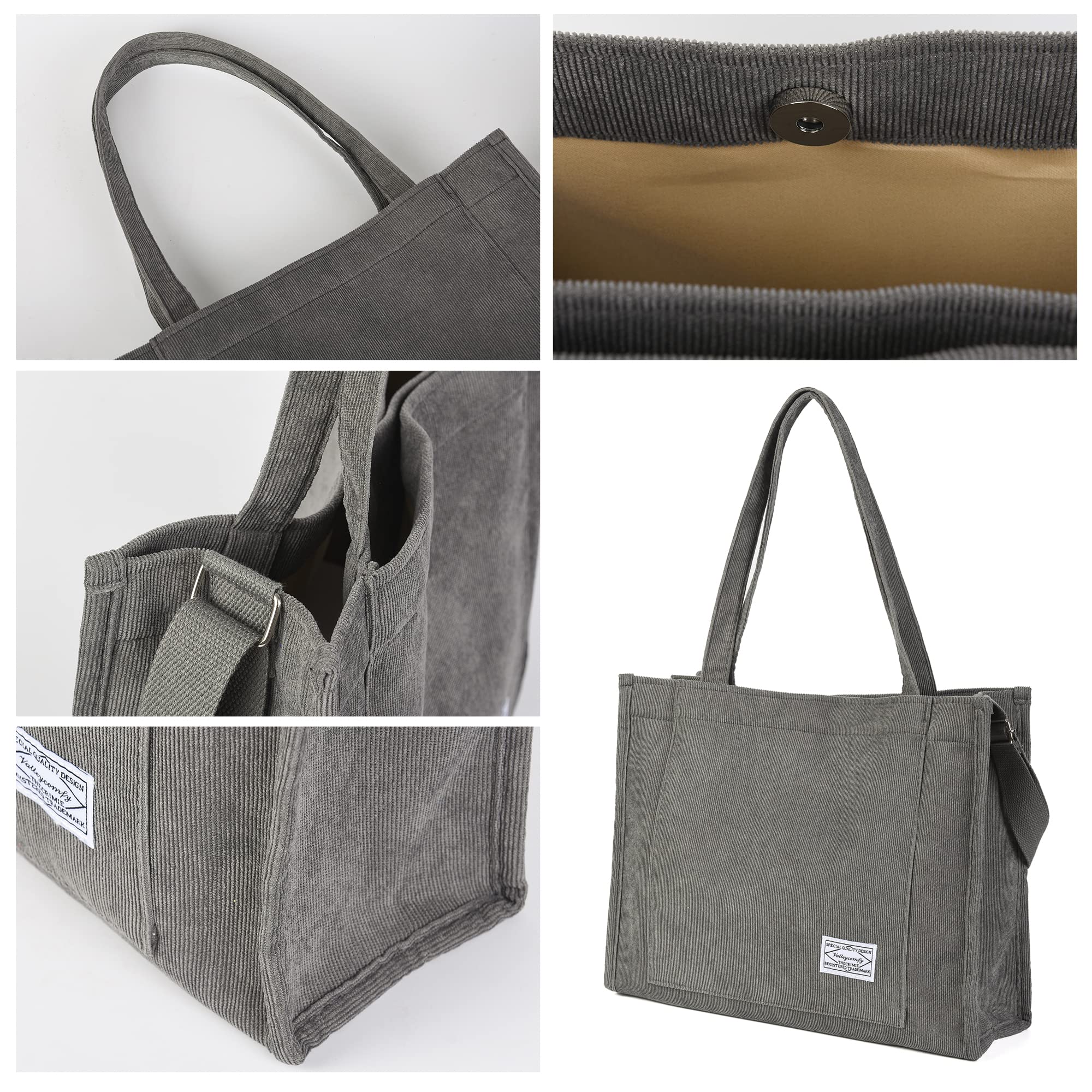 【Soft Material】This Corduroy Tote Bag for Women is made of high quality corduroy fabric and soft polyester lining inside, lightweight, durable and soft, giving you a comfortable carrying experience in various occasions