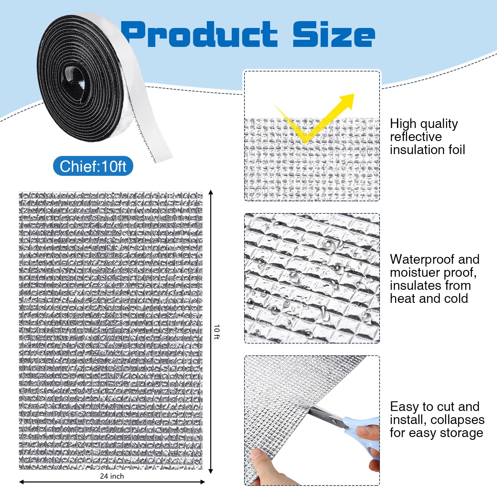 Good Performance: double aluminum foil has good sealing performance, not only blocks the sun but it avoid heat loss and keeps the room cool; This reflective insulation also acts as a barrier and protects your privacy with its opaque foil surface