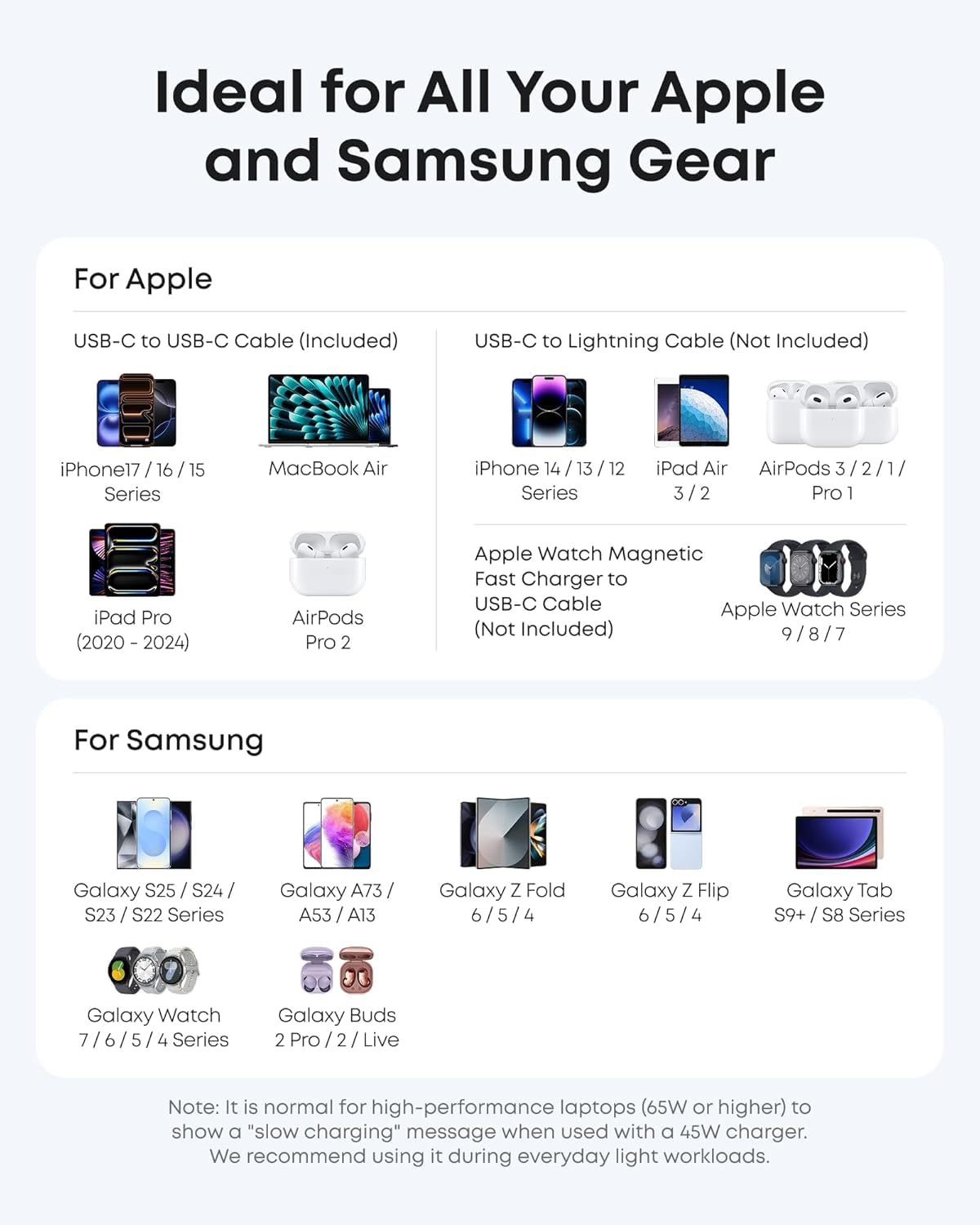 Universal Charging: Supports a wide range of devices, including Apple and Samsung, providing a reliable power source for all your charging needs.