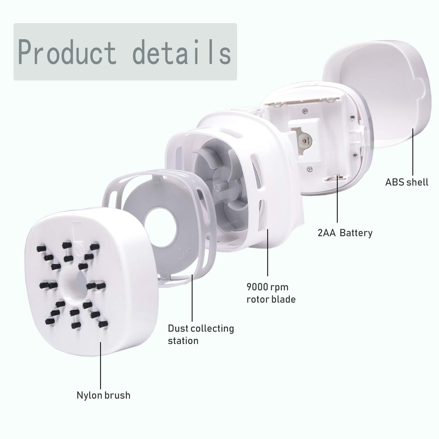 【High Suction and Low Noise】Despite being powered by batteries, the Mini Desk Vacuum still has sufficient suction power of 1000pa, Table Vacuum Cleaner is strong enough to pick up even the largest piles. Yet, it is quiet enough for you to read or sleep while it cleans. Our cordless dust catcher save you from the mess of paper scrap, daily dust, cigarette ash, dog hair or powder on the desk. The table cleaner spins at up to 9000 rpm compared to 6000 rpm of other cleaner. It generates the suction