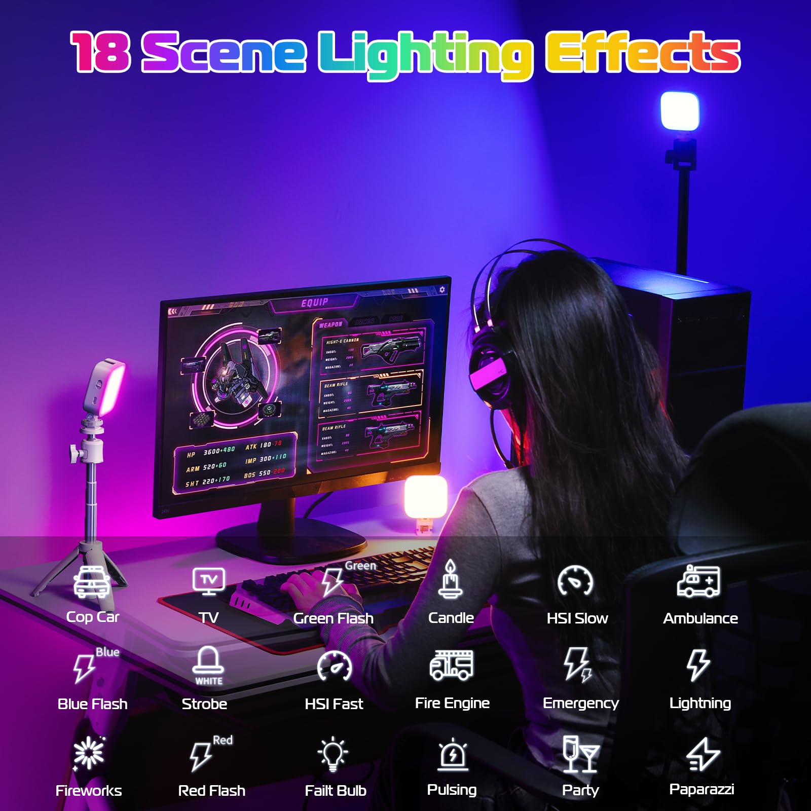 HUE & Brightness & CCT Adjustable: Hue adjustable from 0 degree -359 degree; Brightness from 0%-100% dimmable; Color temperature from 2500K(warm) to 9000K(cold) dimmable. Led camera light built-in LCD display for accurate readings, let you work more effectively.