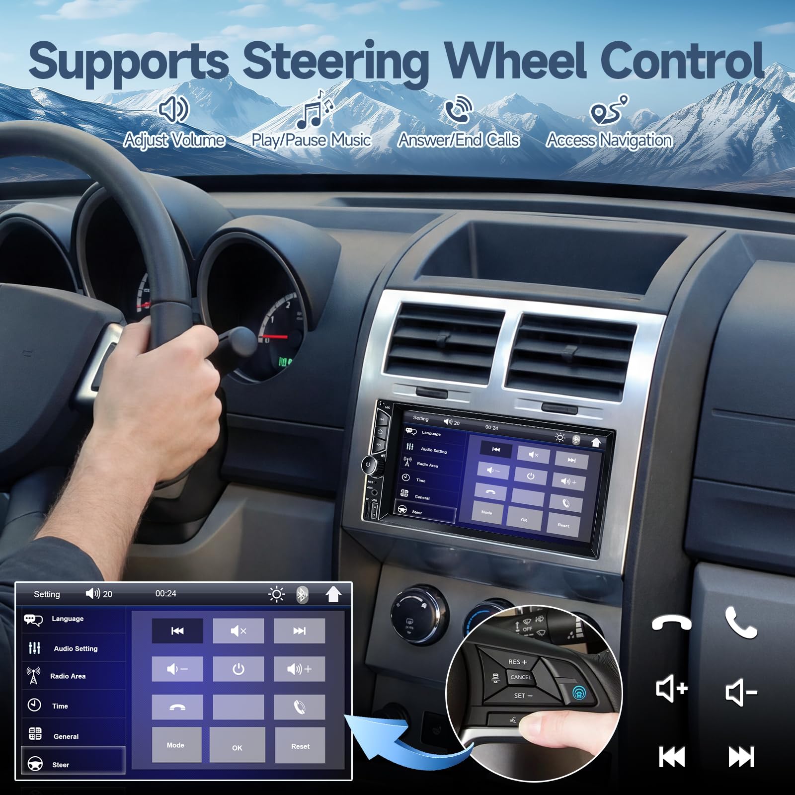 【High Quality Car Stereo Player】- Our double din car stereo size with 7.01"(L)*3.94"(W)2.56"(H), please check the size of your car's radio before ordering. 7inch double din car stereo with 1024*600 Full HD touch screen gives you a fantastic experience. You can enjoy the stream music and the clear picture with your family. Hope you have a good time.