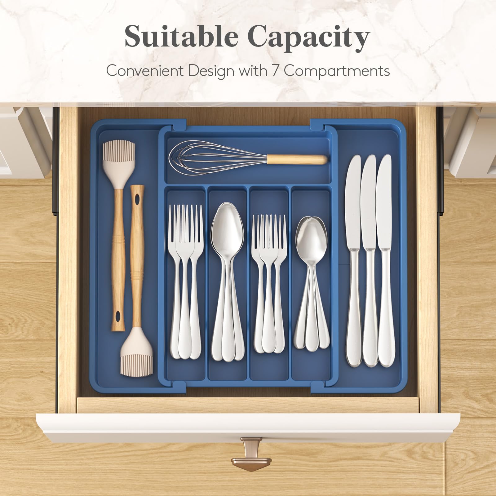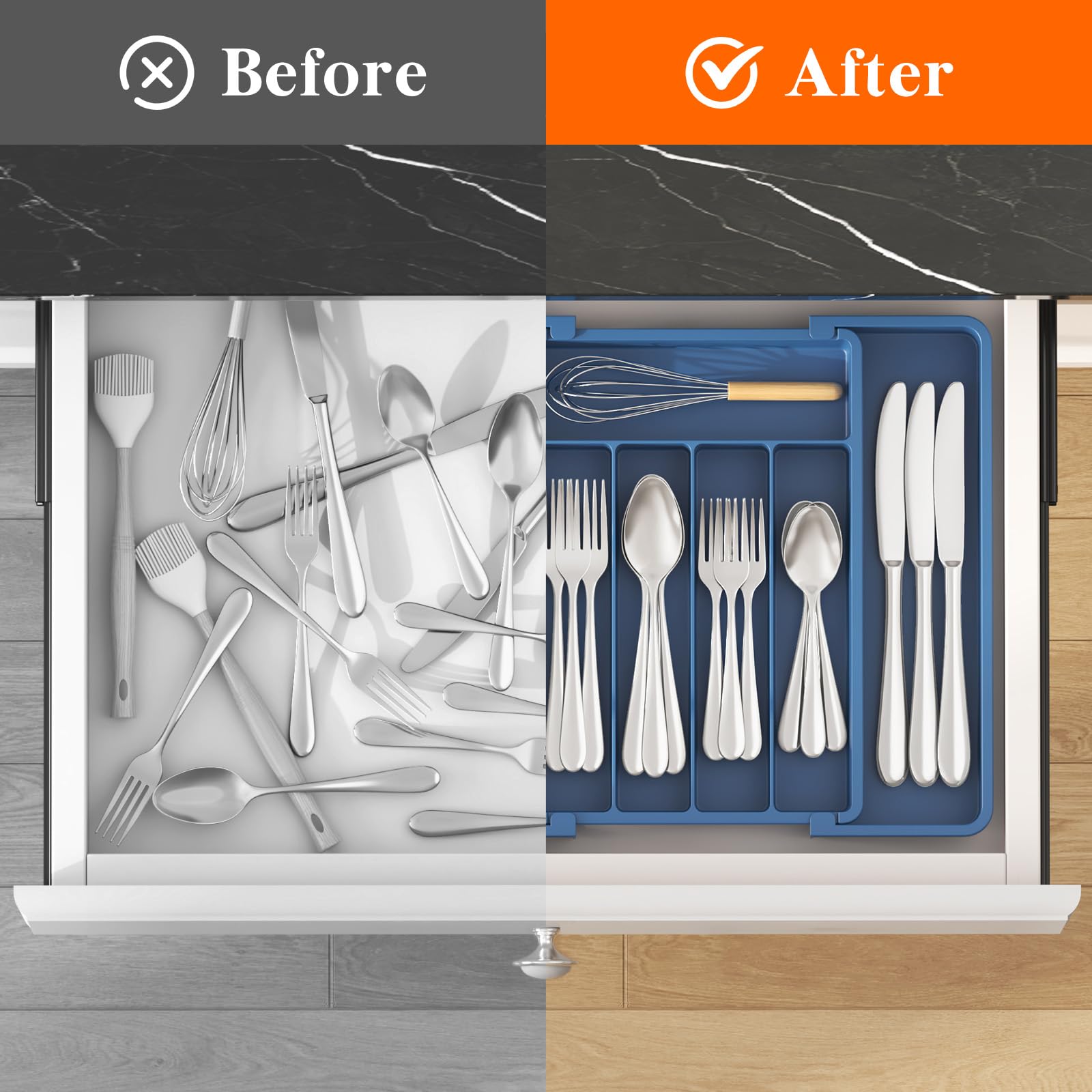 Sort Your Silverware: With a total of seven compartments for easy sorting and storage, this kitchen drawer organizer allows you to easily recognize, identify & pick up the items you need for use