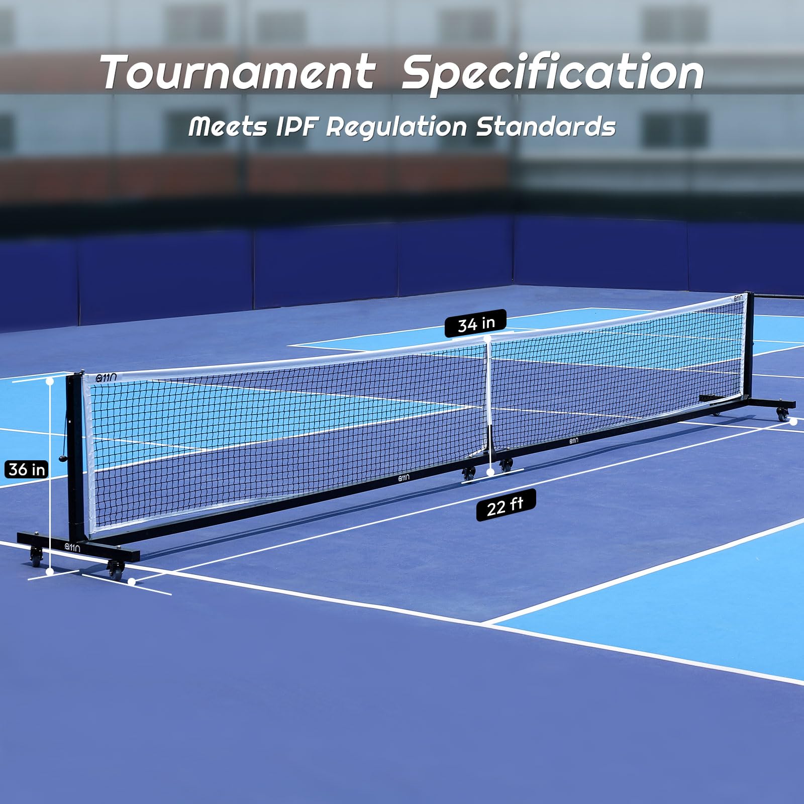 Tournaments Performance: This A11N pickleball net meets IFP tournament net standards with a center height of 34" and a side height of 36". The total length of 22' ensures that this net conforms to official pickleball net dimensions. It's perfect for professional competitions and high-level training.
