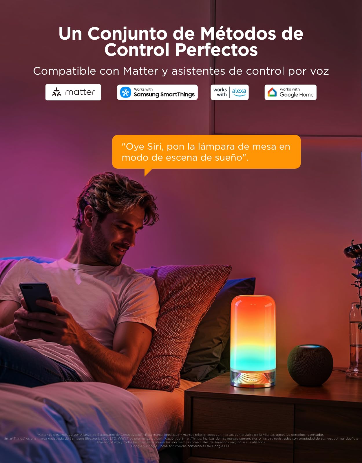 Matter Supported: In addition to Alexa and Google Home voice control support, utilize 3rd-party smart home platforms like HomeKit via the included Matter compatibility of the bedside lamp.