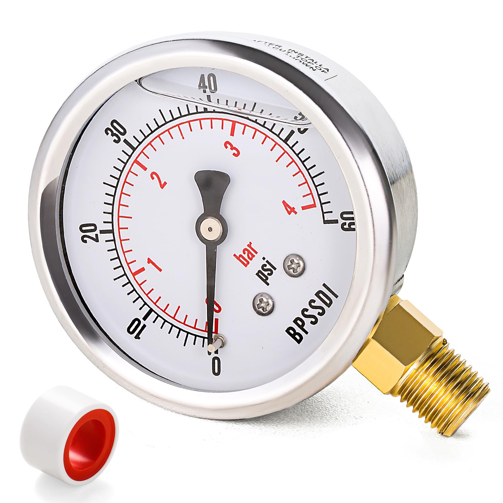 GLYCERIN FILLED: Liquid filling ensures smooth pointer movement and protects internal components from vibration and pulsation