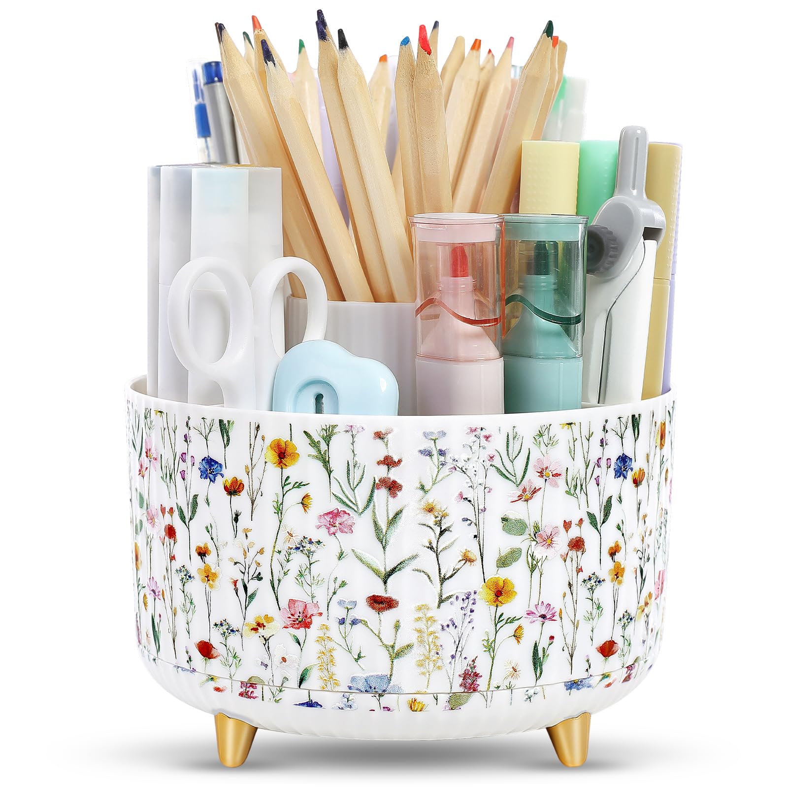 Practical Choice: The rotating pen holder combines practicality and decoration. It keeps your workspace tidy by organizing pens, pencils, and small items, while its stylish design adds a decorative touch, making it both functional and visually appealing