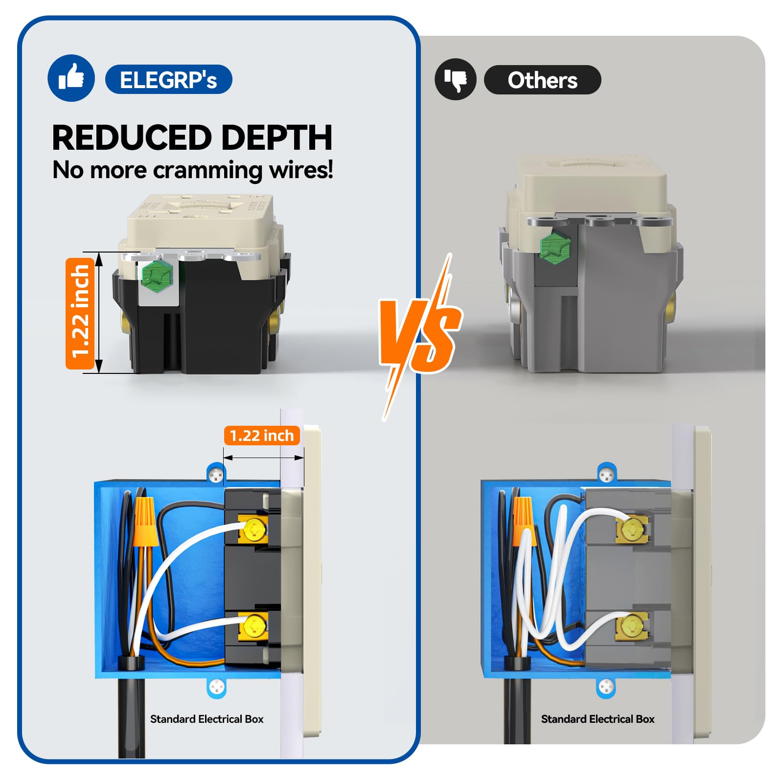 ✅【UL Certified & 3-Year Product Support】ELEGRP GFCI outlets rigorously tested to meet or exceed UL943 & UL498 standards for safety and reliability. Backed by 3 years of product support, ensuring long-term performance and customer satisfaction.