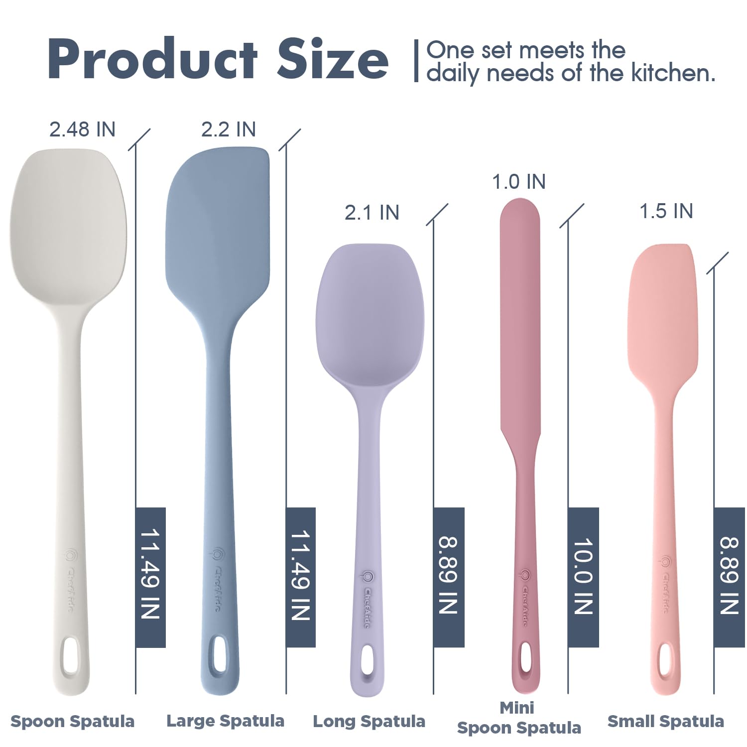 Versatile for Everyday Task: The kitchen utensils set include 5 spatulas which can meet all your needs, the sizes and shapes cover a wide variety of uses. Color availability is a plus. Get ready to start a new recipe