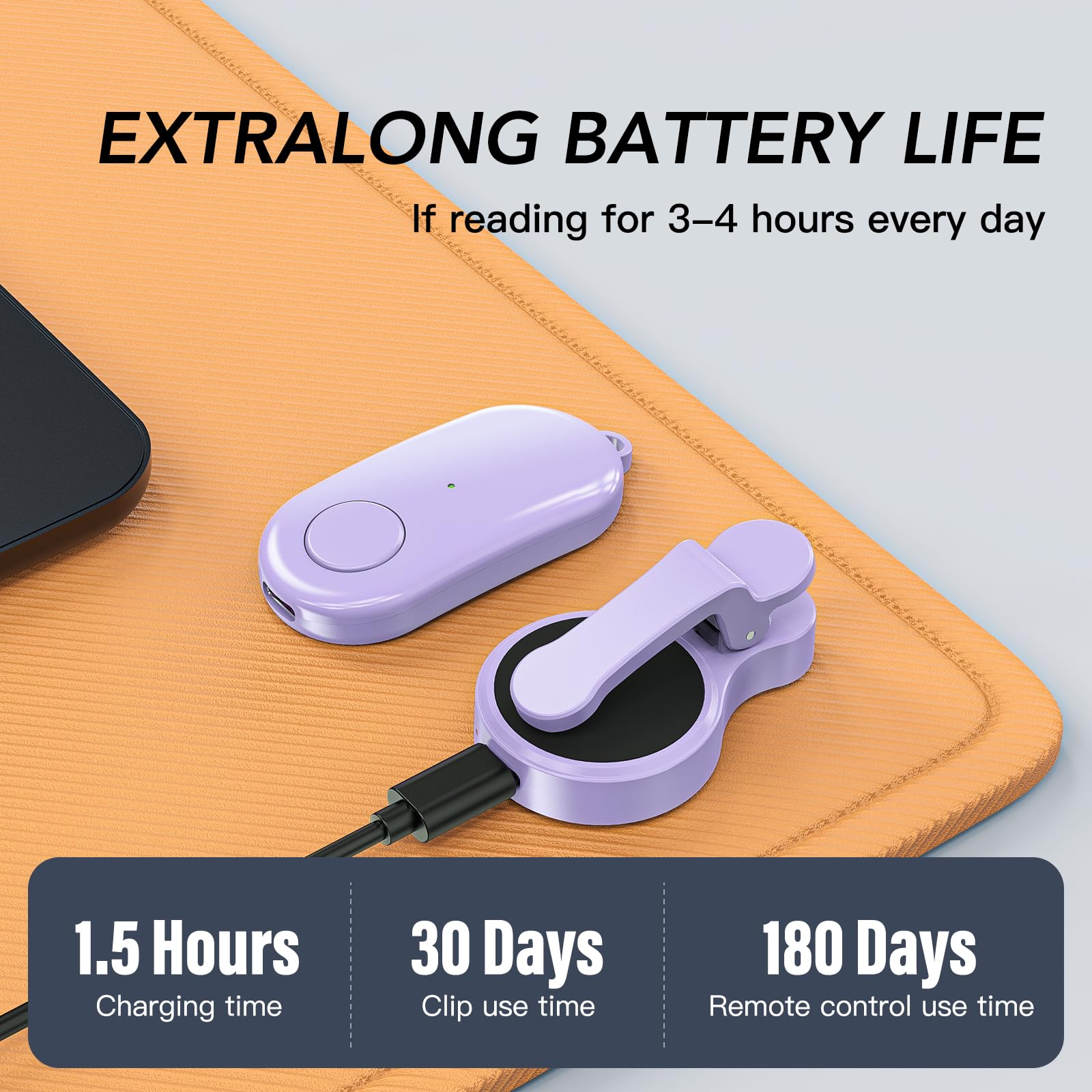 Long Battery Life: Page turner remote for Kindle has a long battery life for long hours of reading. It takes only 1.5 hours to fully charge. After fully charged,if reading 3 hours each day clip charge one time,can use 80 days and standby for up to 5 months, no need to worry about frequent charging