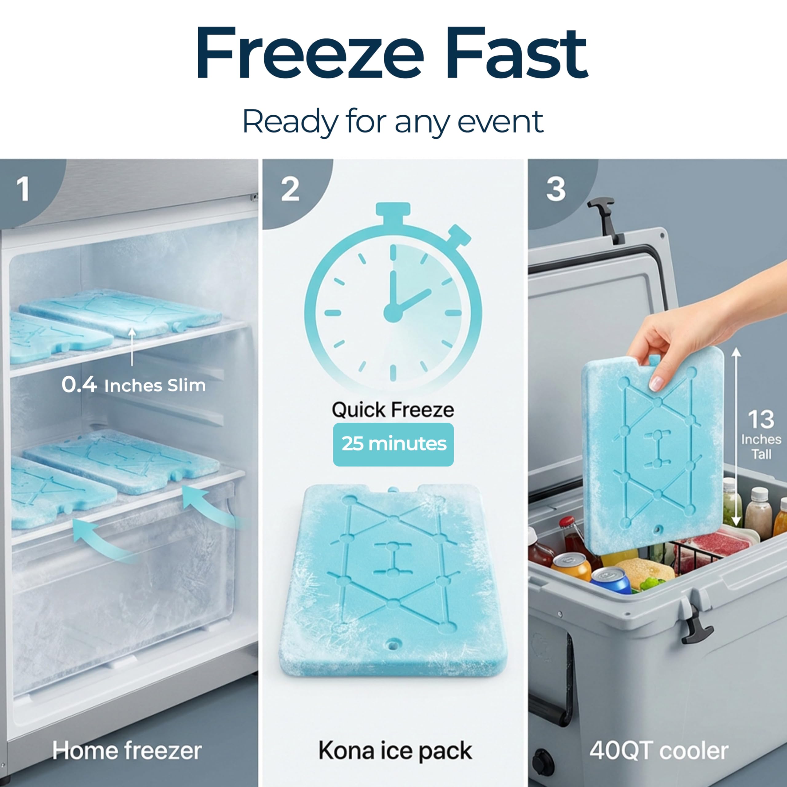 RAPID FREEZE: Ready for use in under 25 minutes; each pack absorbs a massive amount of heat, keeping everything cold for a longer time period