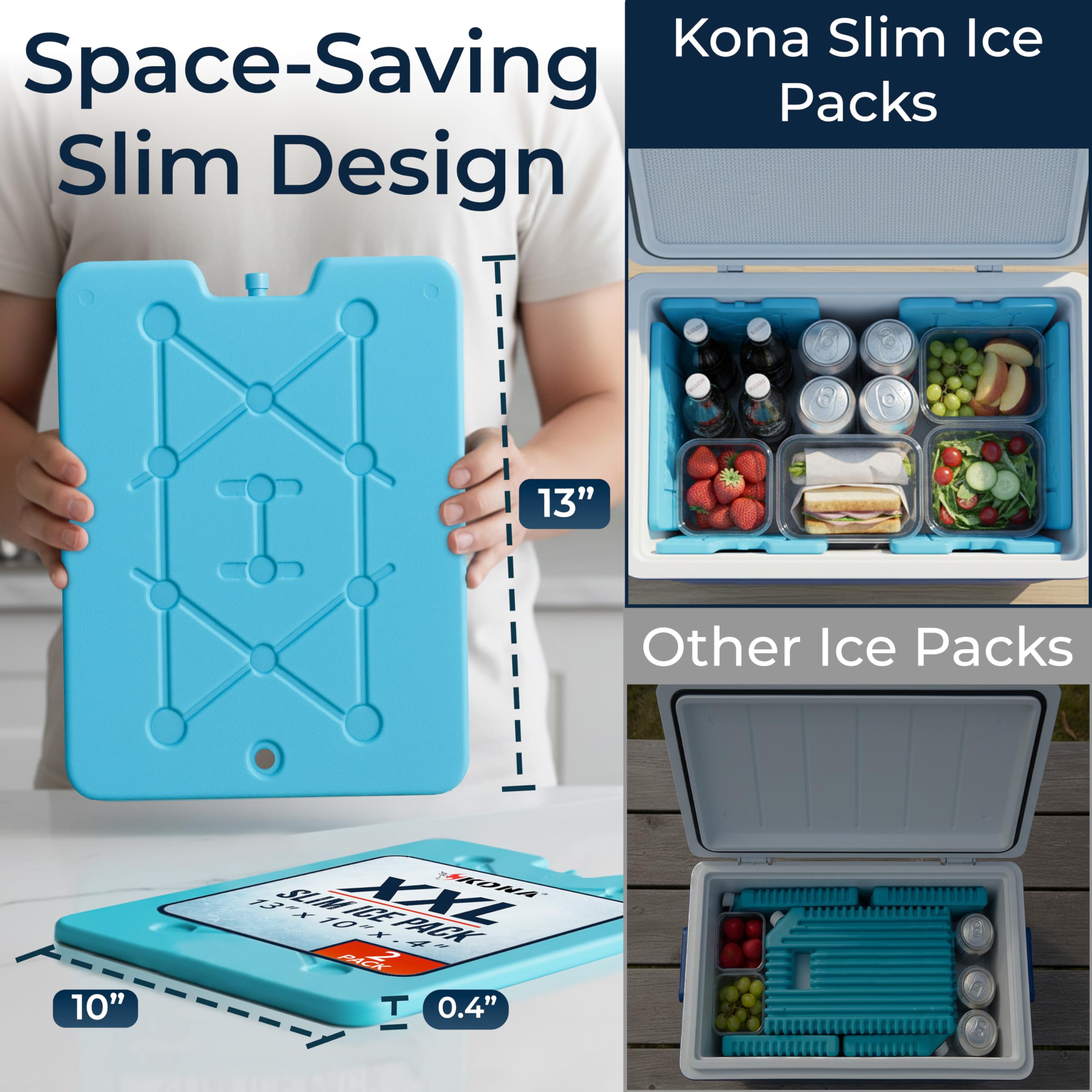 BEST SIZE FOR COOLERS: Extra Large 13 x 10 and only 1/2 inch thick; stop wasting space and increasing weight with ice and thick ice packs; also suitable for reusable shopping bags, ice boxes, etc