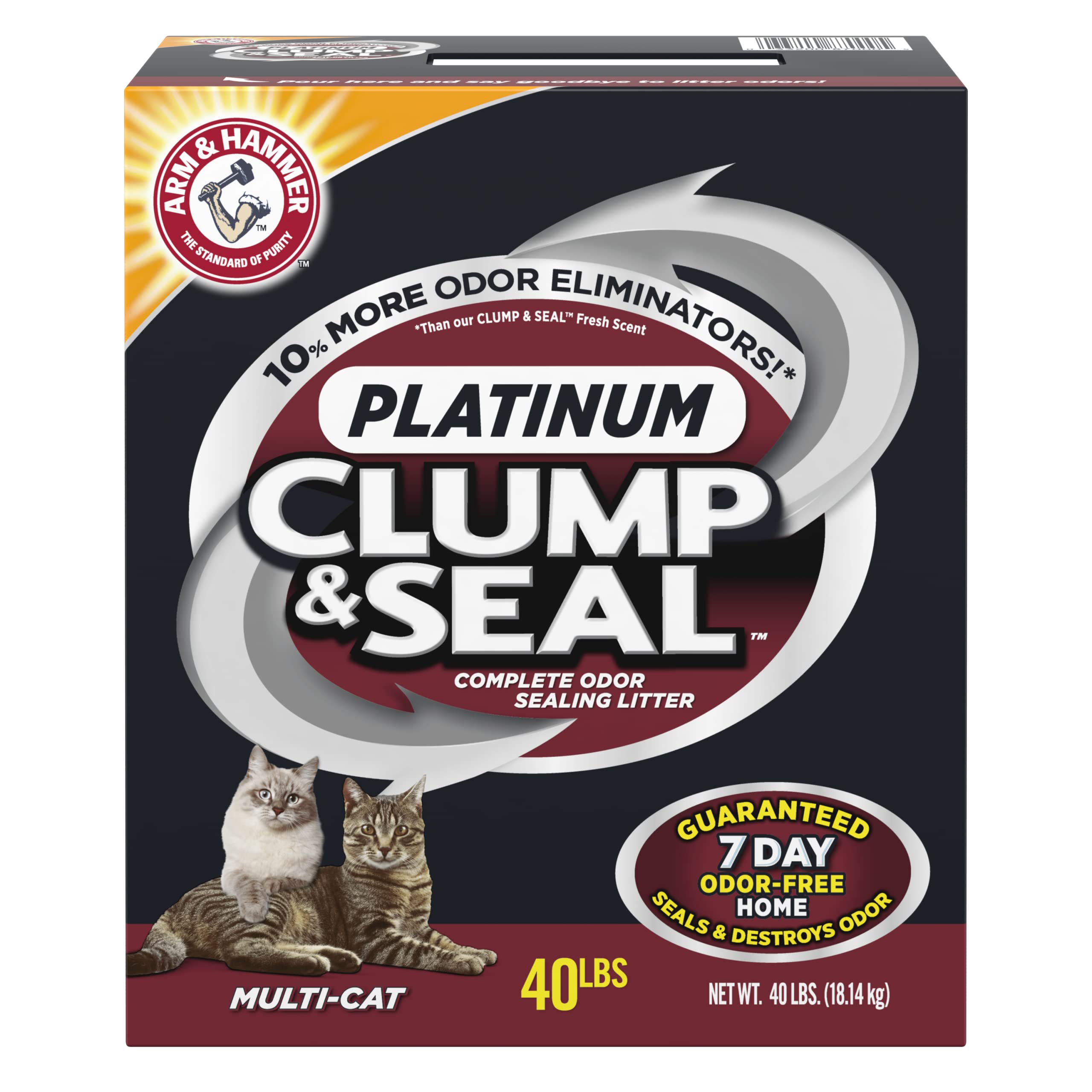 10% MORE ODOR ELIMINATORS: Benefit from a 10% increase in odor-eliminating power with this clump and seal cat litter that features ARM & HAMMER Baking Soda for unparalleled odor management