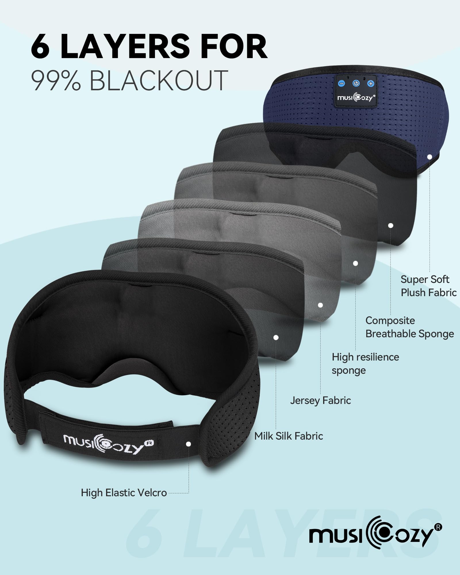 COMFORTABLE & ERGONOMIC DESIGN - MUSICOZY Bluetooth sleep mask made of velvet and stretch cotton, this eye mask is super soft and comfortable. The ergonomic design allows you to enjoy total darkness day or night, making it perfect for relaxation, naps, meditation, and insomnia. The eye mask is perfect for use at home, during travel, or in any situation where you need to block out light and noise.
