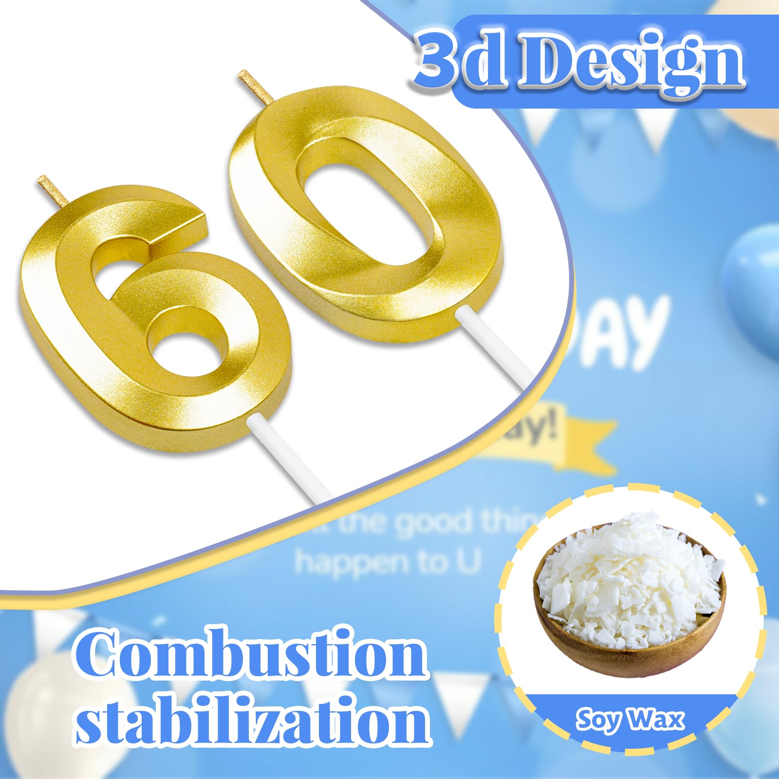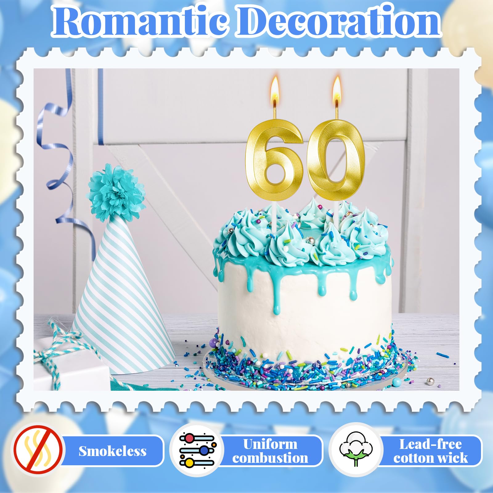 Material : Our birthday candles are made of high quality wax. The candles burn smoothly and steadily, smokeless.