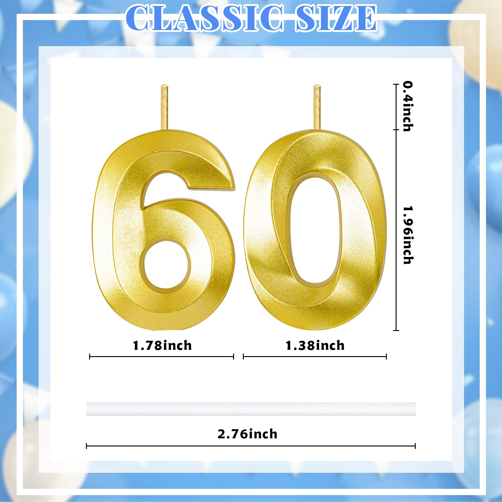 Number Candles Size :Total height: 4.71 inches/11.9 cm. Candle Height 1.92 inches/4.8 cm. Width: 1.36 inches/3.5 cm.Thickness: 0.4 inches/1 cm.