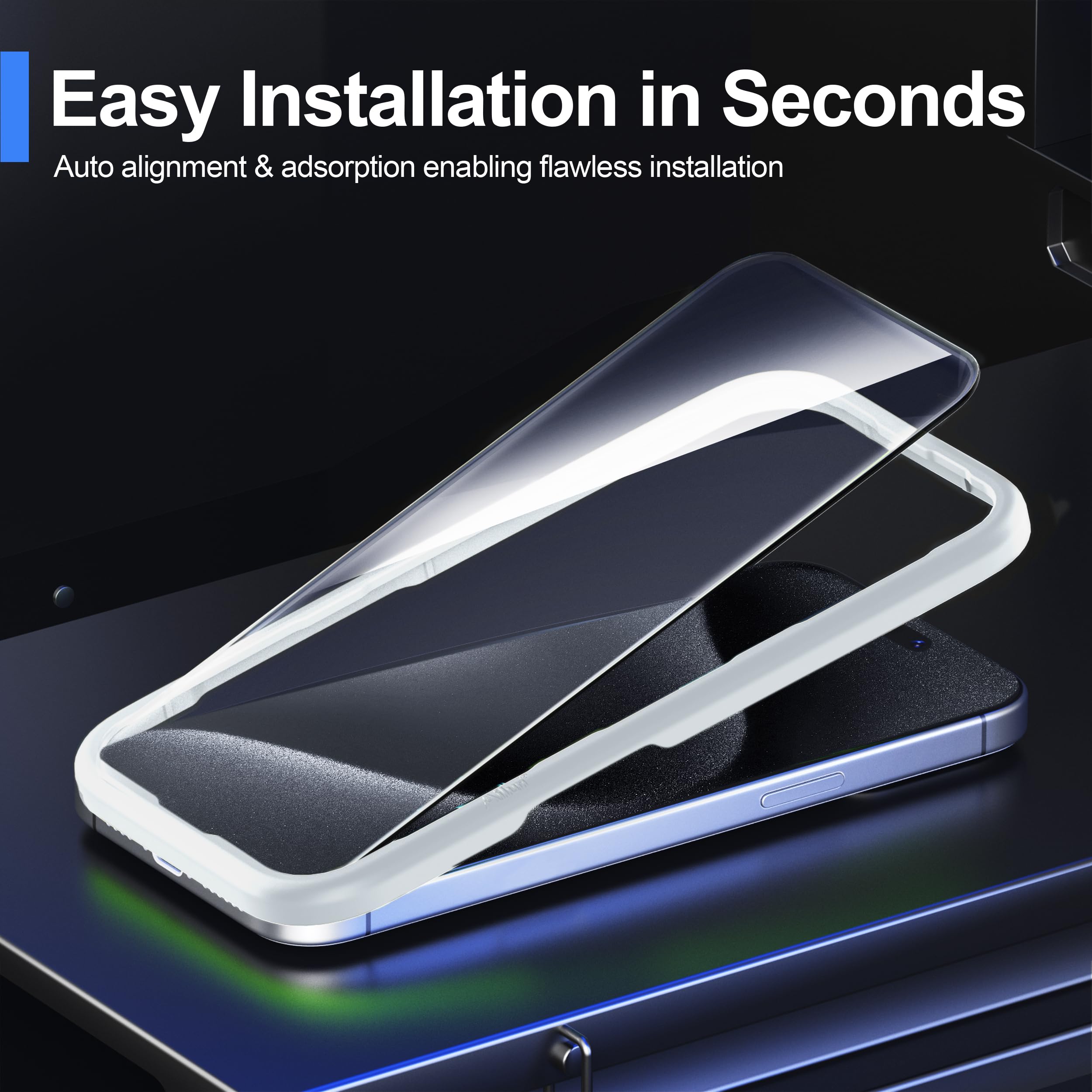 [3+3 Pack] This product includes 3 pack screen protectors and 3 pack camera lens protectors with Installation Frame. Works For iPhone 15 Pro Max tempered glass screen protector and camera lens protector.Featuring maximum protection from scratches, scrapes, and bumps. [Not for iPhone 15/iPhone 15 Pro 6.1inch, iPhone 15 Plus 6.7inch]