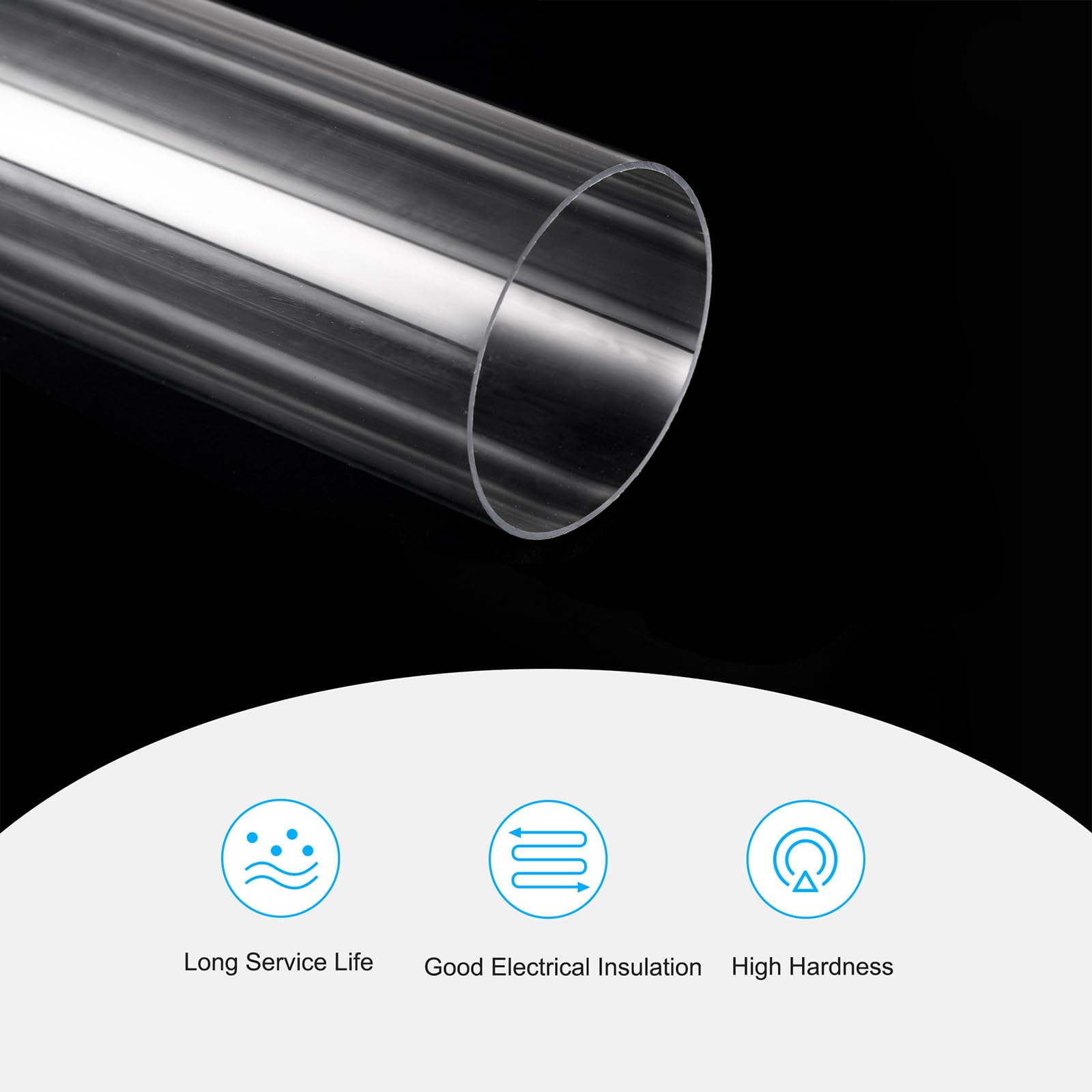 Round hard tube made in polycarbonate material, durable and long service life; High transparency, high light transmission; Rigid round tubing has very high impact resistance.