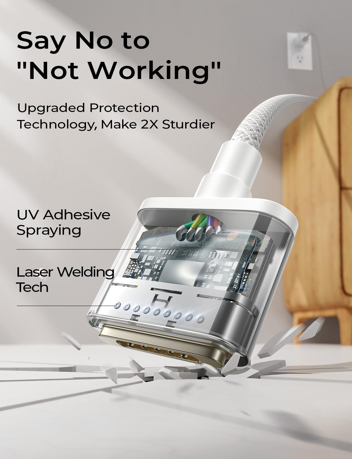 3X Long-lasting Protect Design: Constructed with a high-strength braided cover, this Macbook Air charger cable resists wear, bending, and tangling, ensuring lasting durability. Reinforced at the port with laser-welded metal that stays secure. The copper core is UV-glued for solder joint protection, and the mag-safe 3 port passes 13KG load testing for long-term resilience