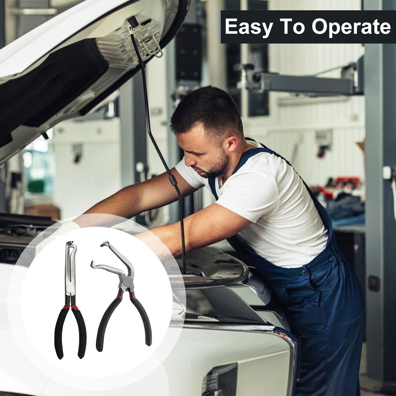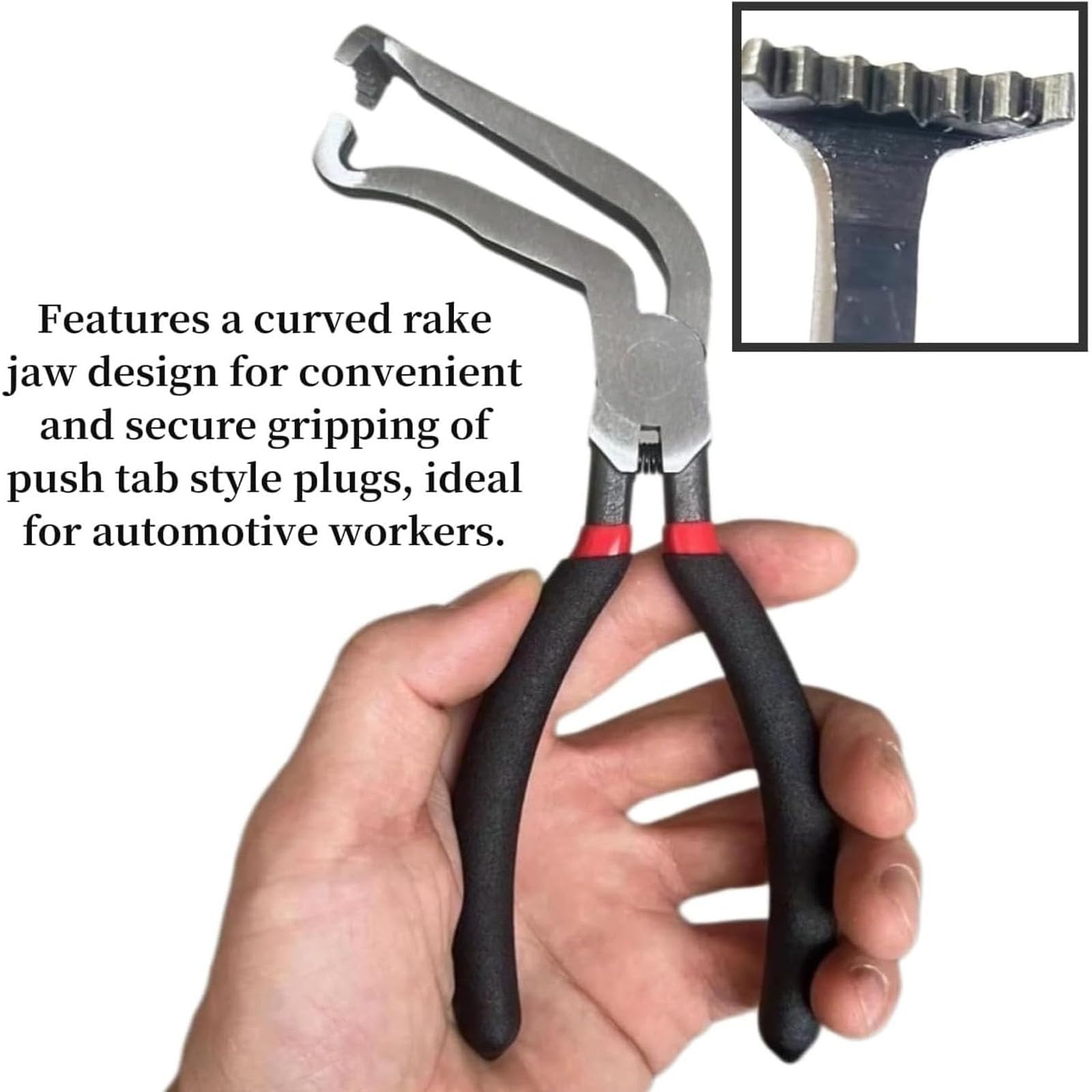【Easy To Use】: First, use the hook at the end of the pliers to pull out the tab for unlocking. Second, use the point to grasp the tab and then squeeze the tab. Third, pull to separate the connector from the senor. The car electrical disconnect pliers allows you to use it with one hand, very convenient.
