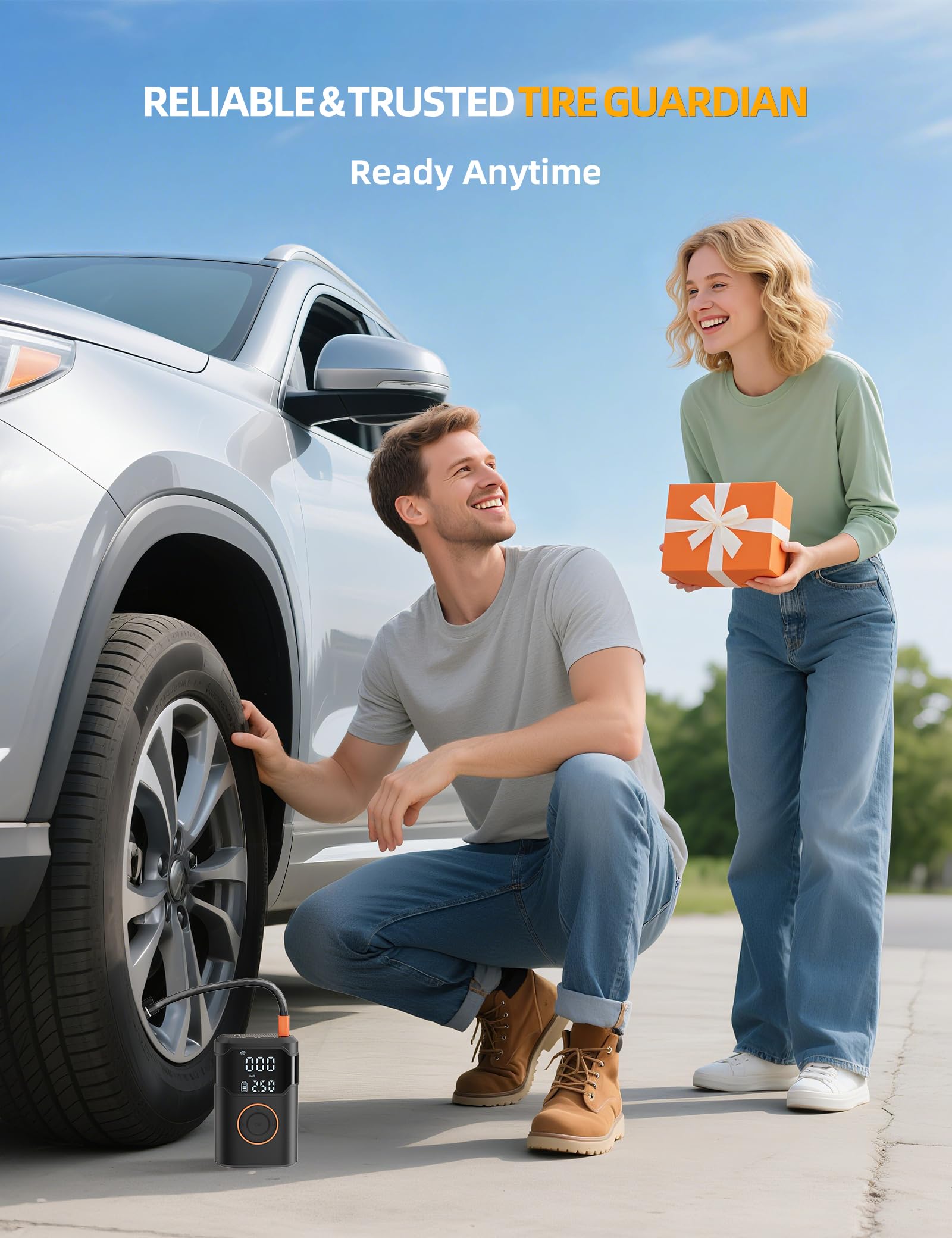 【Caring Protection, Perfect Gift】: With this portable car air pump, you can quickly handle unexpected tire issues, giving you and your family peace of mind on every trip. It makes a thoughtful gift for fathers, husbands, boyfriends, brothers, or friends who love cycling and travel—practical, reliable, and full of heart, perfect for Father’s Day, Christmas, and other special occasions.