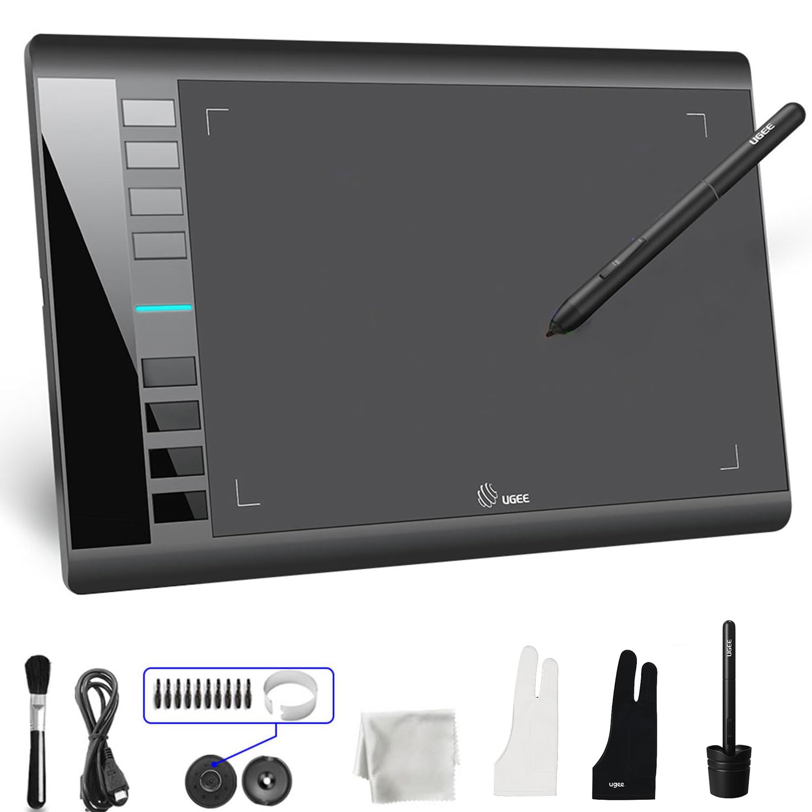 Complete Accessories & Warranty: This graphics drawing tablet includes a pen stand, 8 replacement nibs, nib replacement ring, 2-finger glove, cleaning brush, and cleaning cloth. Backed by a 12-month hassle-free warranty and 24/7 customer support, the UGEE M708 V3 is a mature, high-quality product you can rely on for all your creative needs.