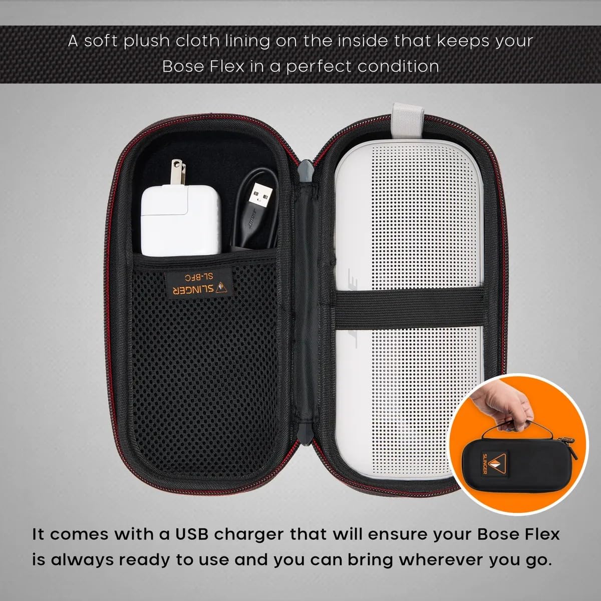 INCLUDED - Bose SoundLink Flex (Blue Dusk), USB-C cable, user manual, 1-year warranty, & Slinger hard shell case with USB charger for ultimate portability.