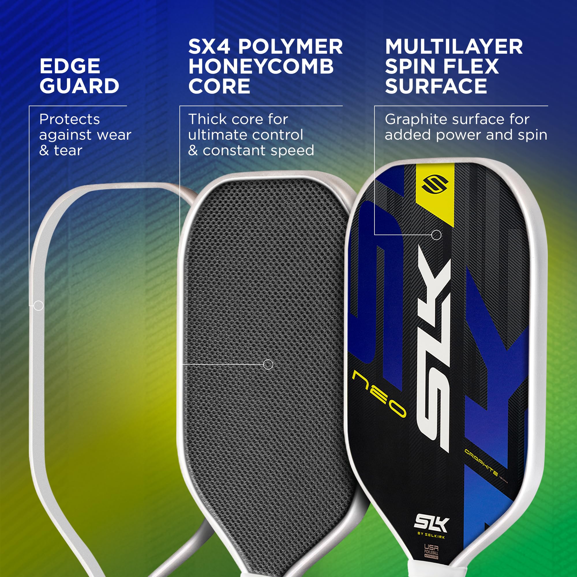 GRAPHITE PICKLEBALL PADDLES: The SLK Neo 2.0 bundle combines the latest technology with comfort, balance, and affordability. Our G4 Control Graphite Surface gives ultimate control of your game while the SpinFlex Texture ensures increased spin consistency and ball control.