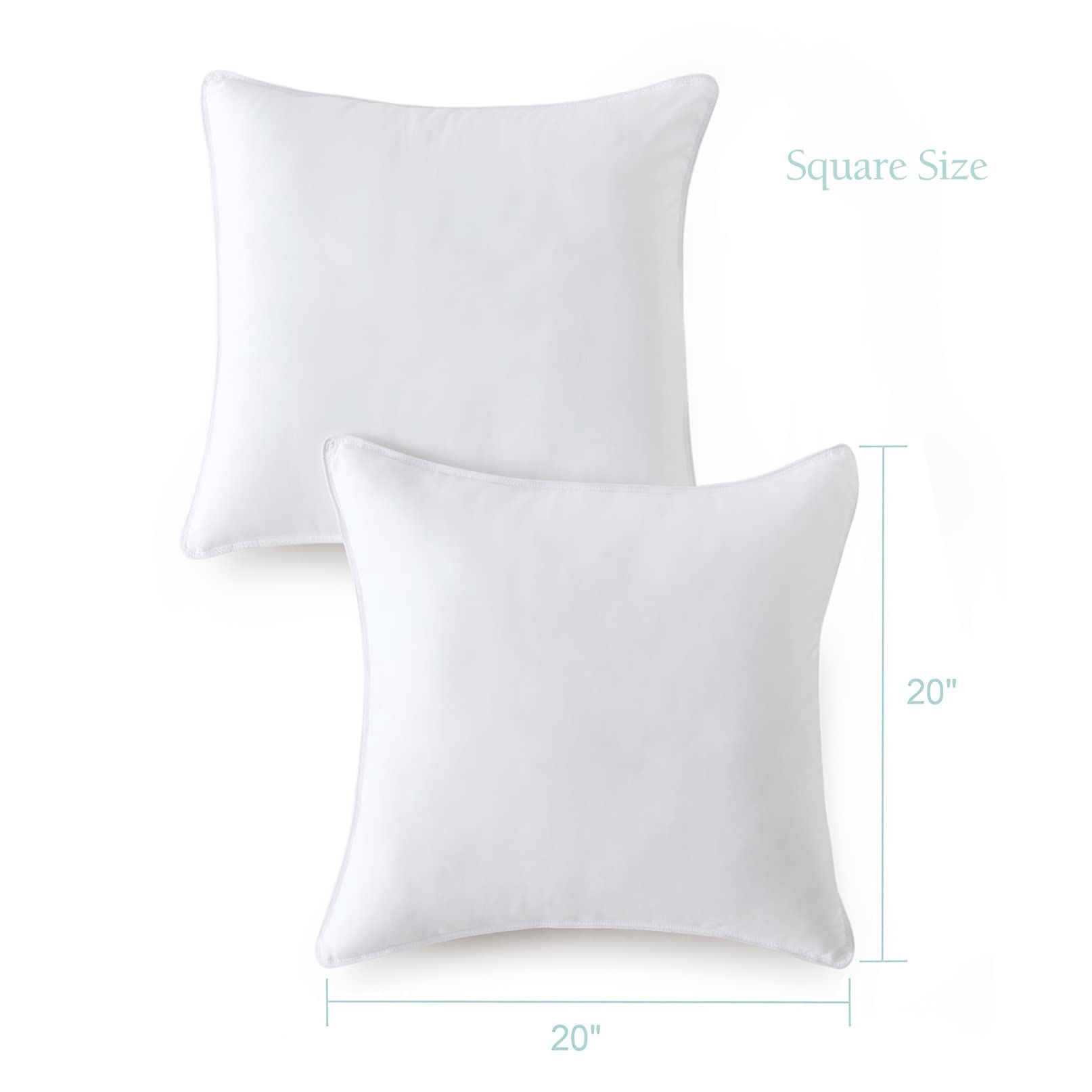 WON'T GO FLAT - Measures 20 x 20 inches. Filled with down-alternative filling for softness and support, doesn't lose its shape or cause unsightly bulges.