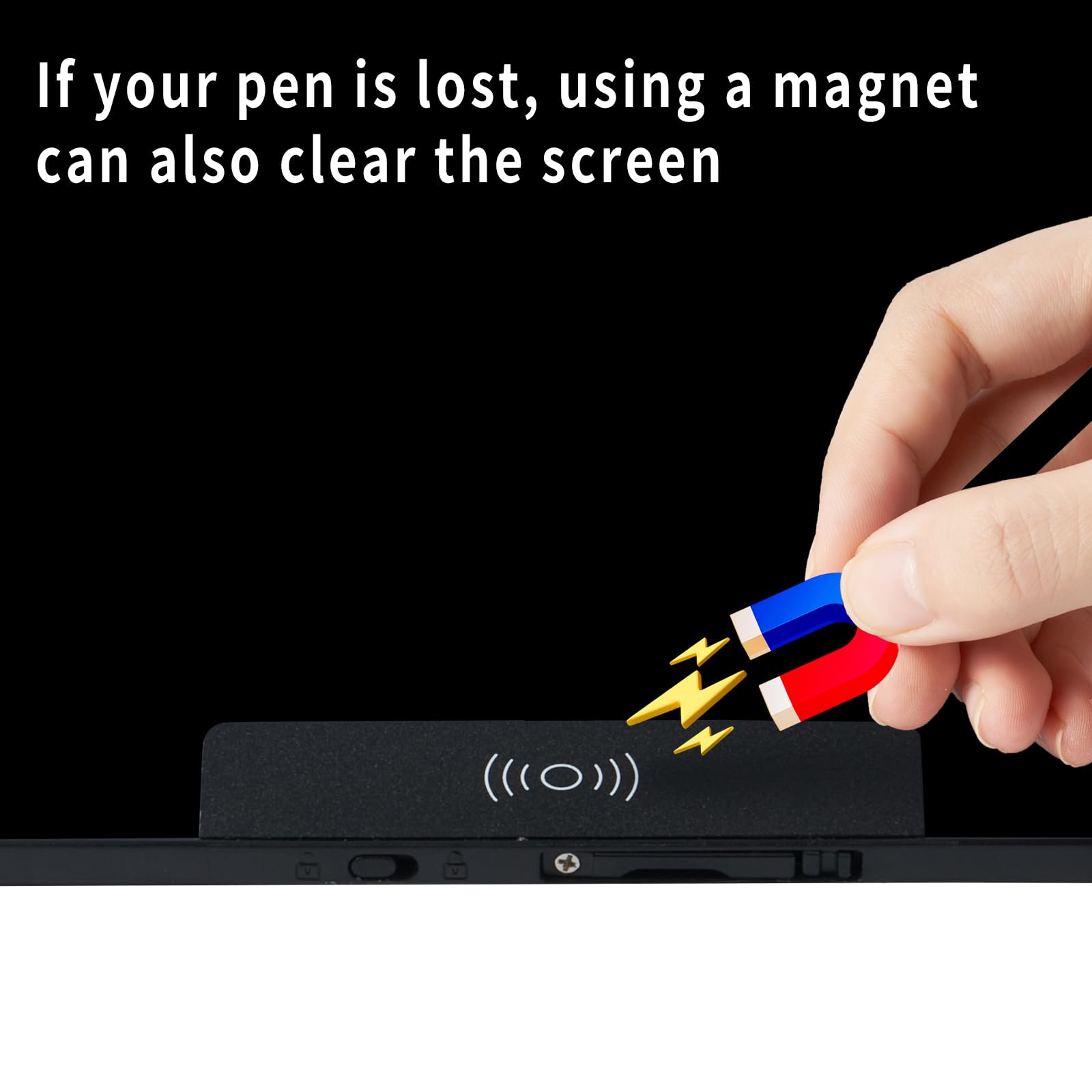 Ultra-Slim Design:Our LCD writing tablet features a phone-like slim body (only 0.2 inch thin) with rounded corners, crafted from durable ABS material. At just 0Bigger Writing Space: The tablet offers an expansive writing space, providing more room for content compared to traditional 16-inch LCD writing tablets. The new cleaning button design prevents accidental activation, while the edge structure stabilizes the pen more securely than magnetic alternatives, ensuring a steadier writing experience. These improvements enhance the tablet's overall usability and writing capabilities. .76 lb, this lightweight digital notepad fits perfectly in one hand.