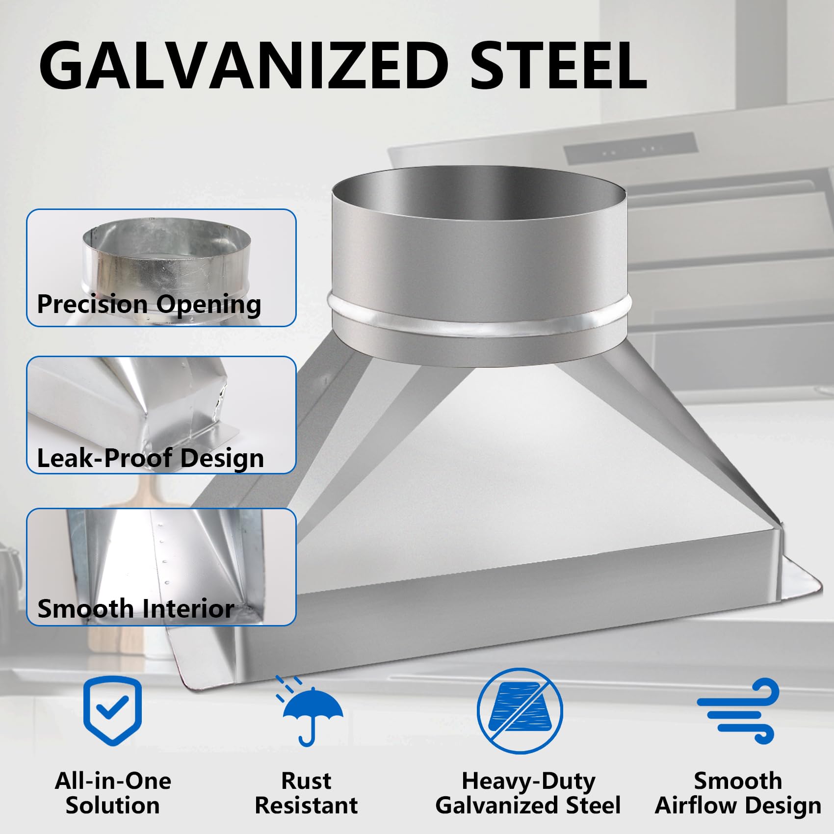 【Heavy-Duty Galvanized Steel】Microwave round to rectangular duct adapter kit was built with rust- and corrosion-resistant galvanized steel for long-lasting durability. Suitable for both indoor and outdoor use—even in harsh weather.