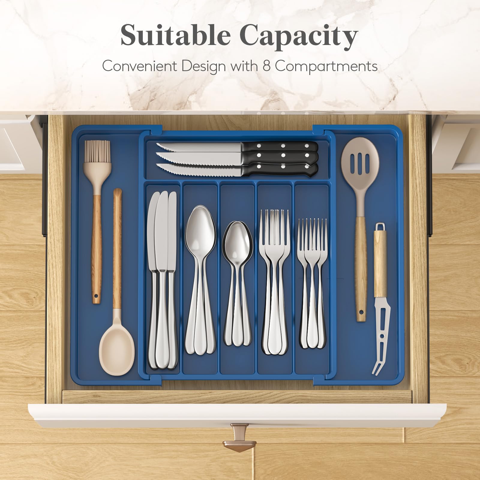 Sort Your Silverware: With a total of eight compartments for easy sorting and storage, this kitchen drawer organizer allows you to easily recognize, identify & pick up the items you need for use