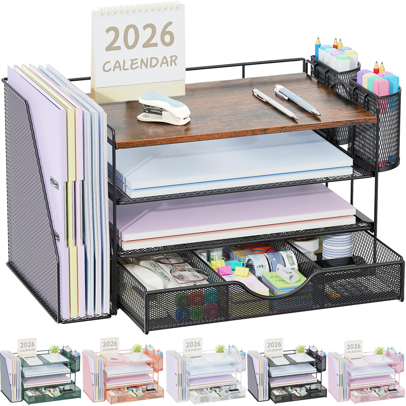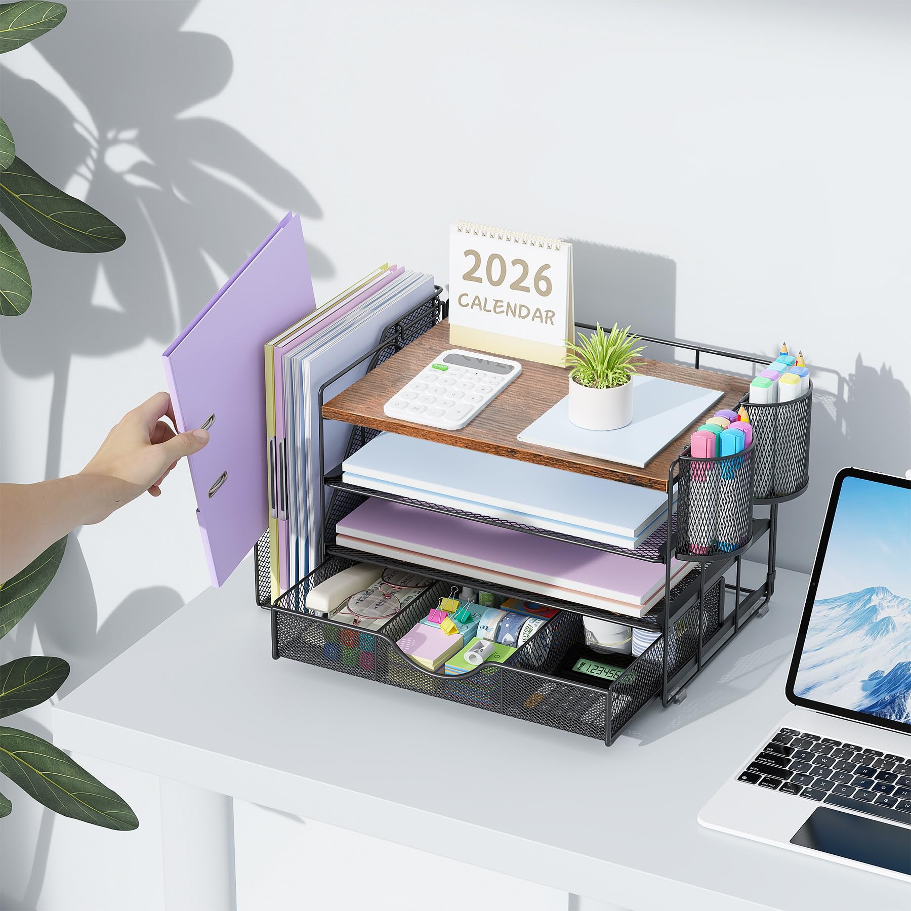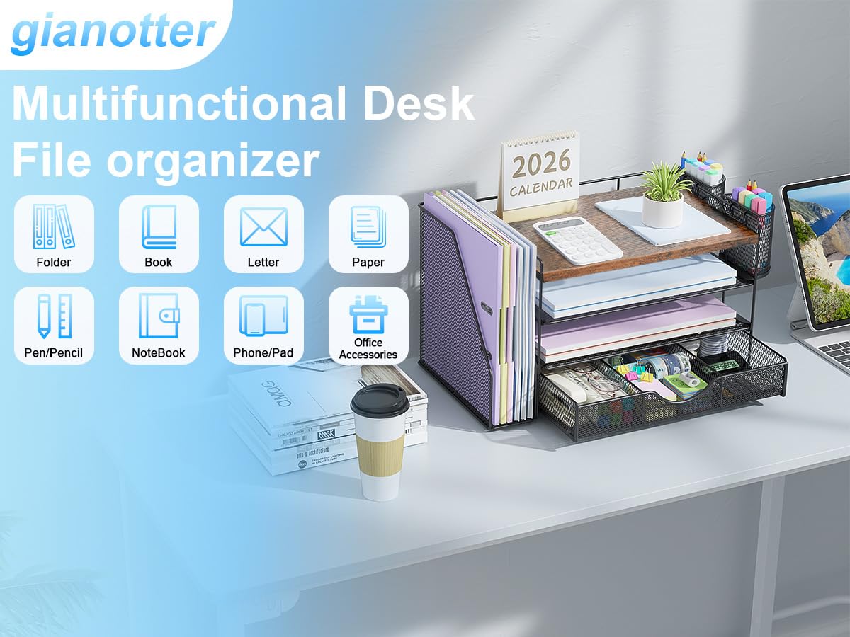 📂【Improve Work Efficiency】:The file organizer includes 4 trays, a magazine rack, 2 pen holders and a sliding drawer, helps you quickly identify the contents of each compartment, doubles your work speed, keeps you busy and more creative throughout the day.