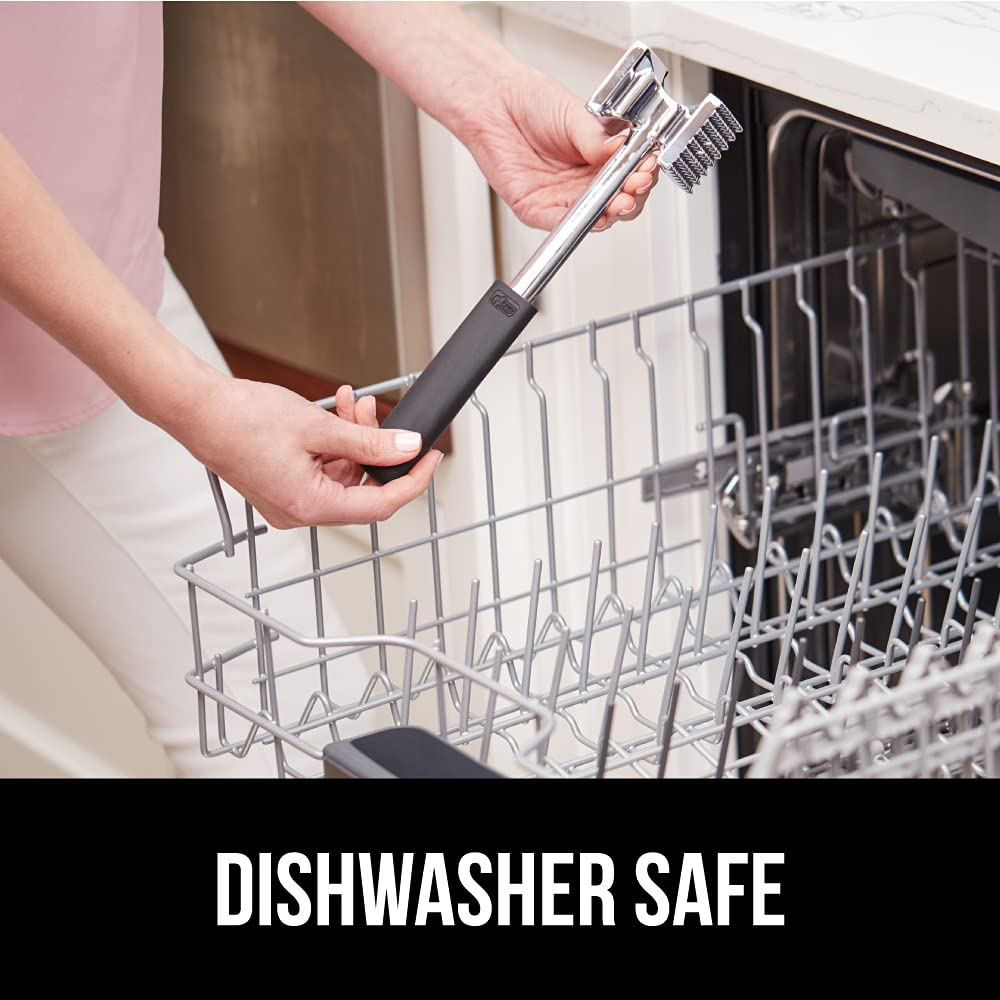 BPA FREE, FOOD GRADE AND DISHWASHER SAFE: meat tenderizer tool is food grade and tested to be safe for direct contact with foods; use for nearly any recipe, from thick cuts of steak, to chicken, to even vegetables; crush up garlic and ginger, and even make mashed potatoes; dishwasher safe for an easy clean every time; wash before first use