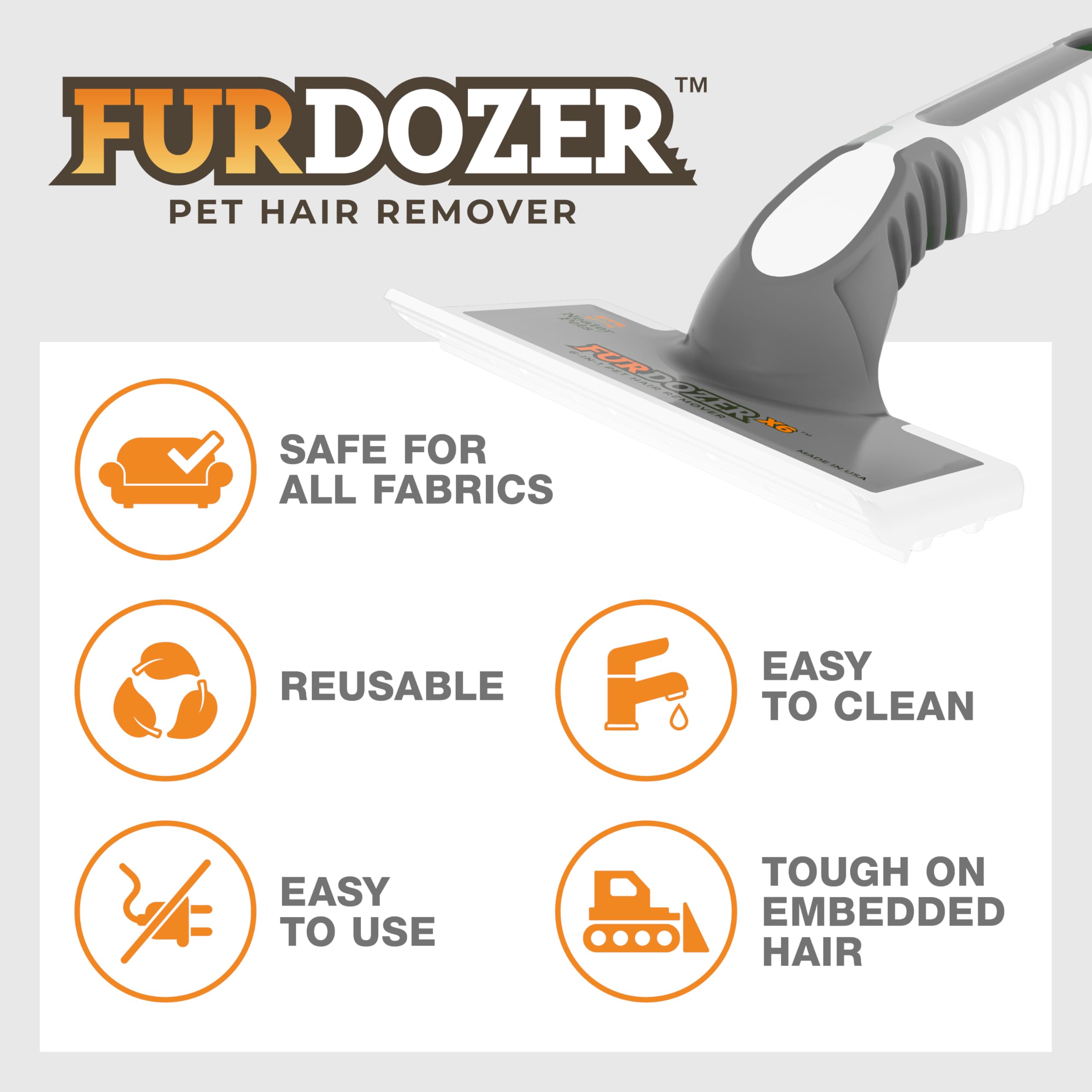 FOR BEST RESULTS: To get the most out of your FurDozer X6 Pet Hair Remover, we recommend making sure that the part of the tool that you are cleaning with makes full contact with the surface you're cleaning. Then, apply pressure and pull towards you in short and quick strokes. If you find that the FurDozer isn't picking up a lot of hair, you are likely not applying enough pressure or not using the correct feature of the FurDozer. Don't worry about damaging the surface you are cleaning - the FurDozer is made of gentle material and will not cause damage. *FurDozer is not a brush and is not for use on pets.*