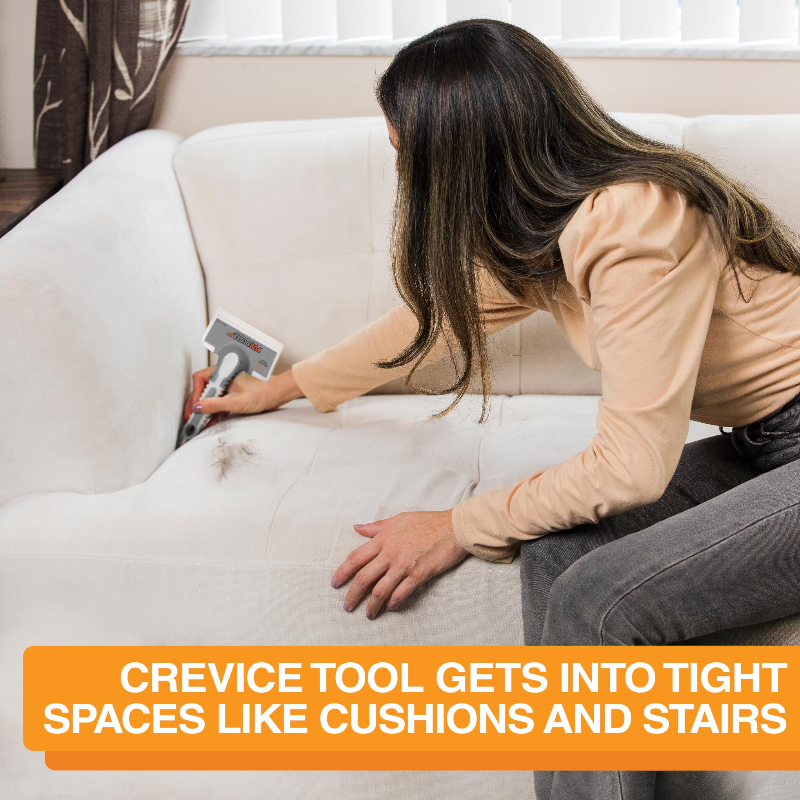 CREVICE TOOL GETS BETWEEN COUCH CUSHIONS: The FurDozer X6’s secret weapon is its crevice tool. Use this tool for car detailing between car seats and seat belt holders, at home in between and couch cushions, along the edge of stairs or cat trees, and in other tight spaces that a vacuum or lint brush can’t reach.