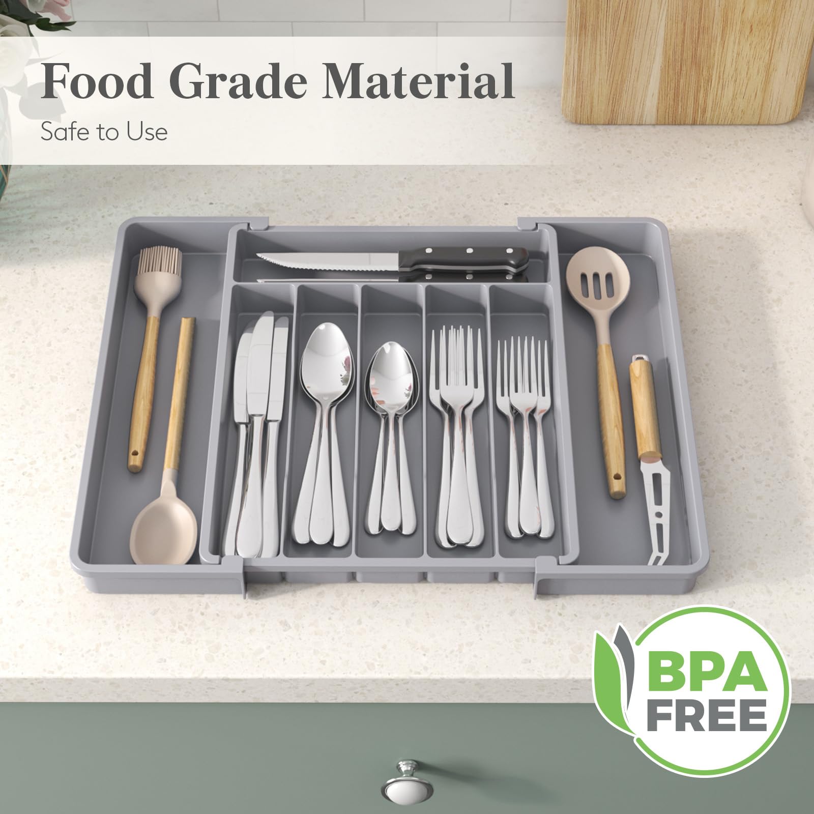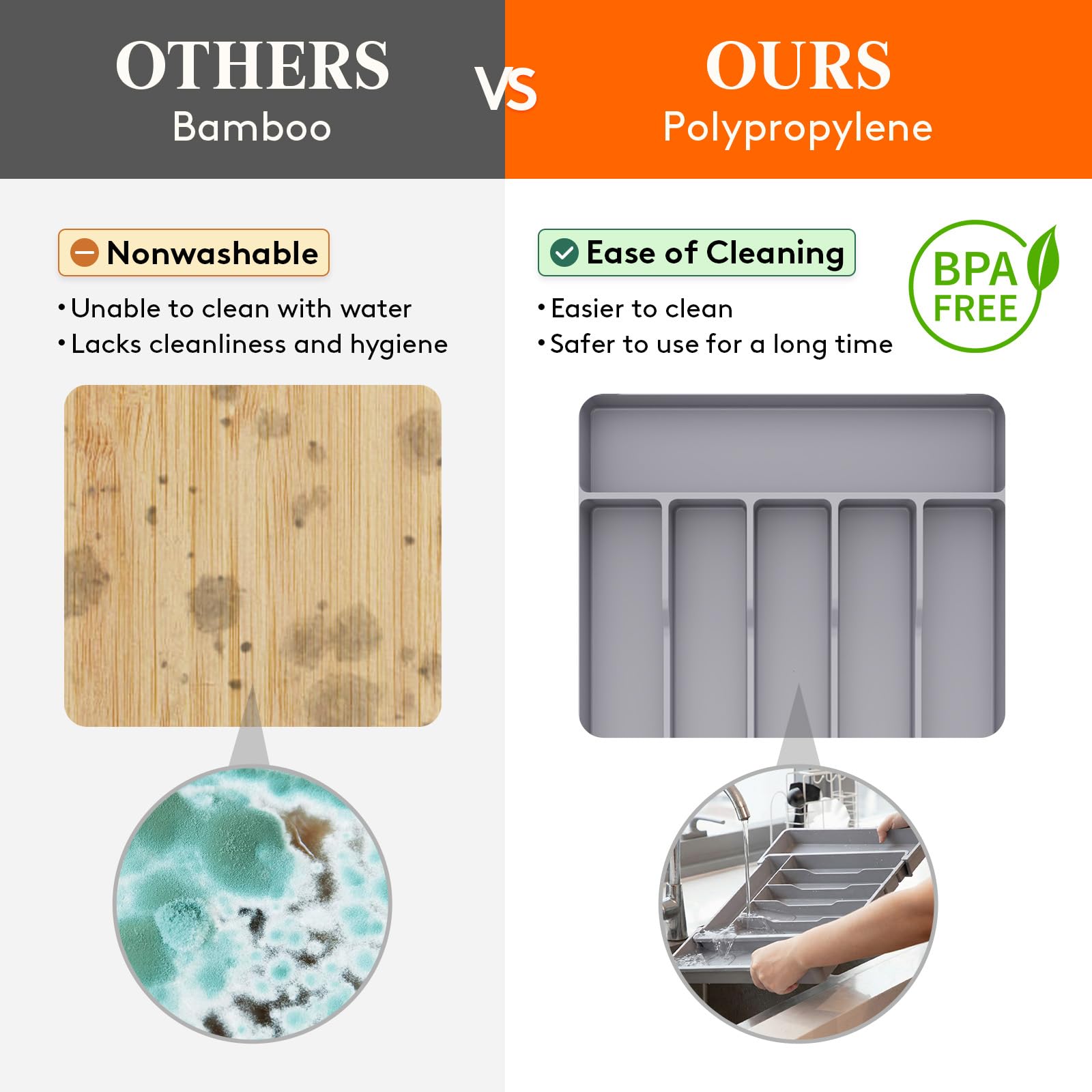 Premium Material: Made of thick and sturdy premium PP material, the cutlery organizer is BPA free so you can rest assured that it is safe to use with all forms of tableware. The durable construction means it is built to last for a long time