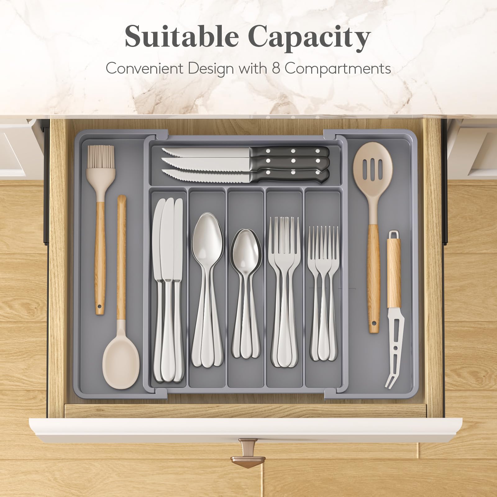 Sort Your Silverware: With a total of eight compartments for easy sorting and storage, this kitchen drawer organizer allows you to easily recognize, identify & pick up the items you need for use