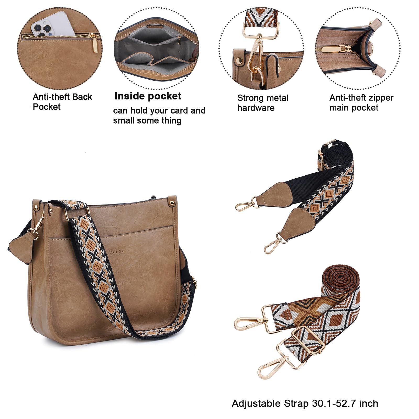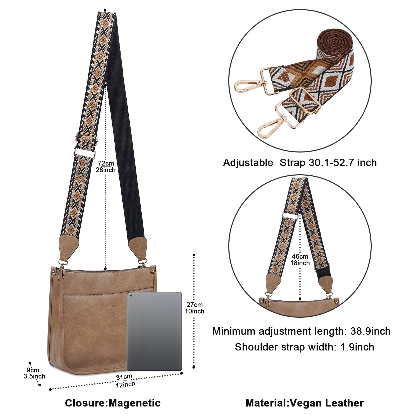 Come with 2 Pcs Straps:Each HKCLUF bags equipped with 2 adjustable crossbody wide shoulder straps:1 weaving shoulder strap + 1 boho style strap,you can change out the strap to match more different outfits,or adjust strap's length for crossbody bag or shoulder bag