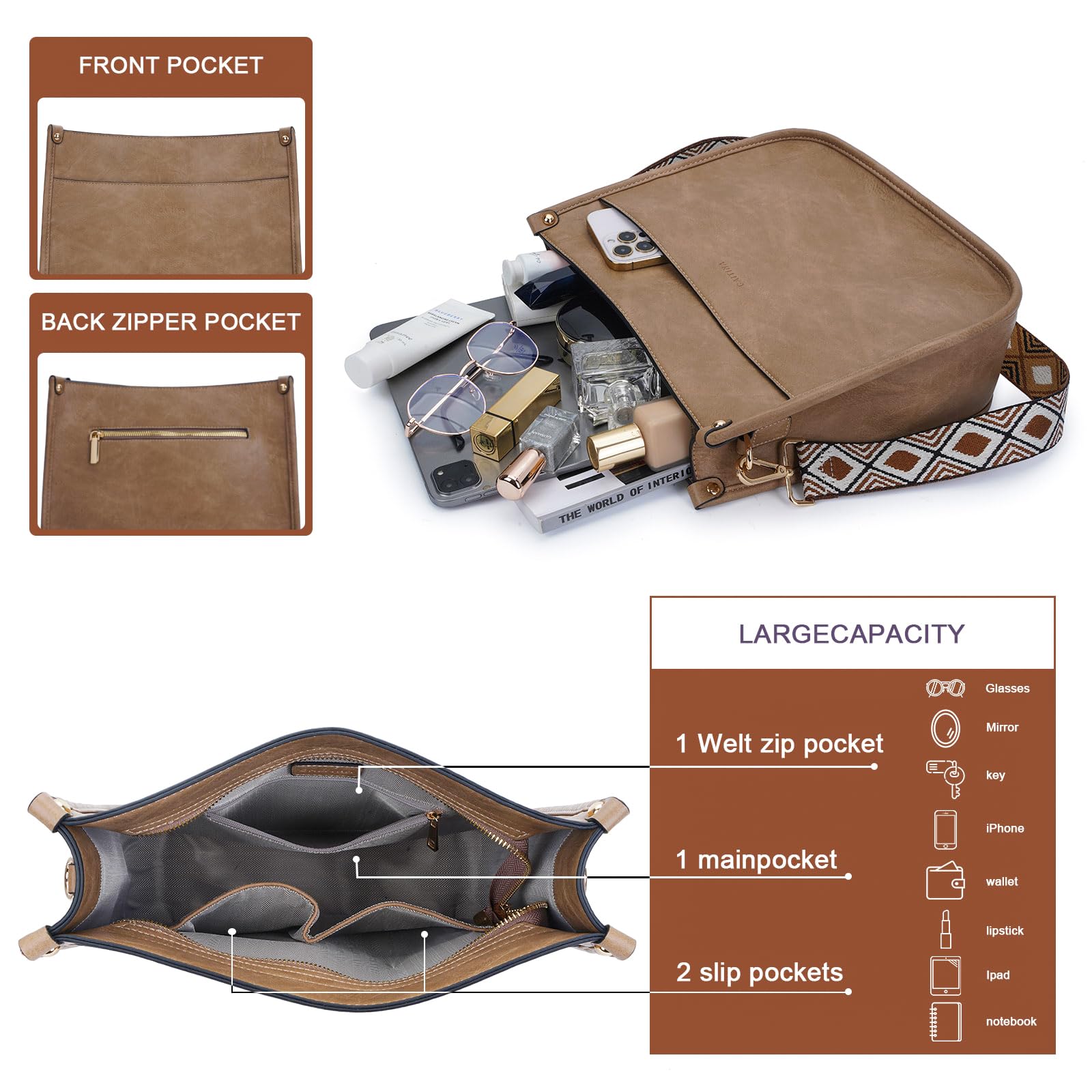 Premium Leather Material:This crossbody bag is made of vegan leather with waterproof ability,soft fabric,abrasion-resistant,scratch-resistant,non-fading,also without any weird smell,and non't hurt people's body skin