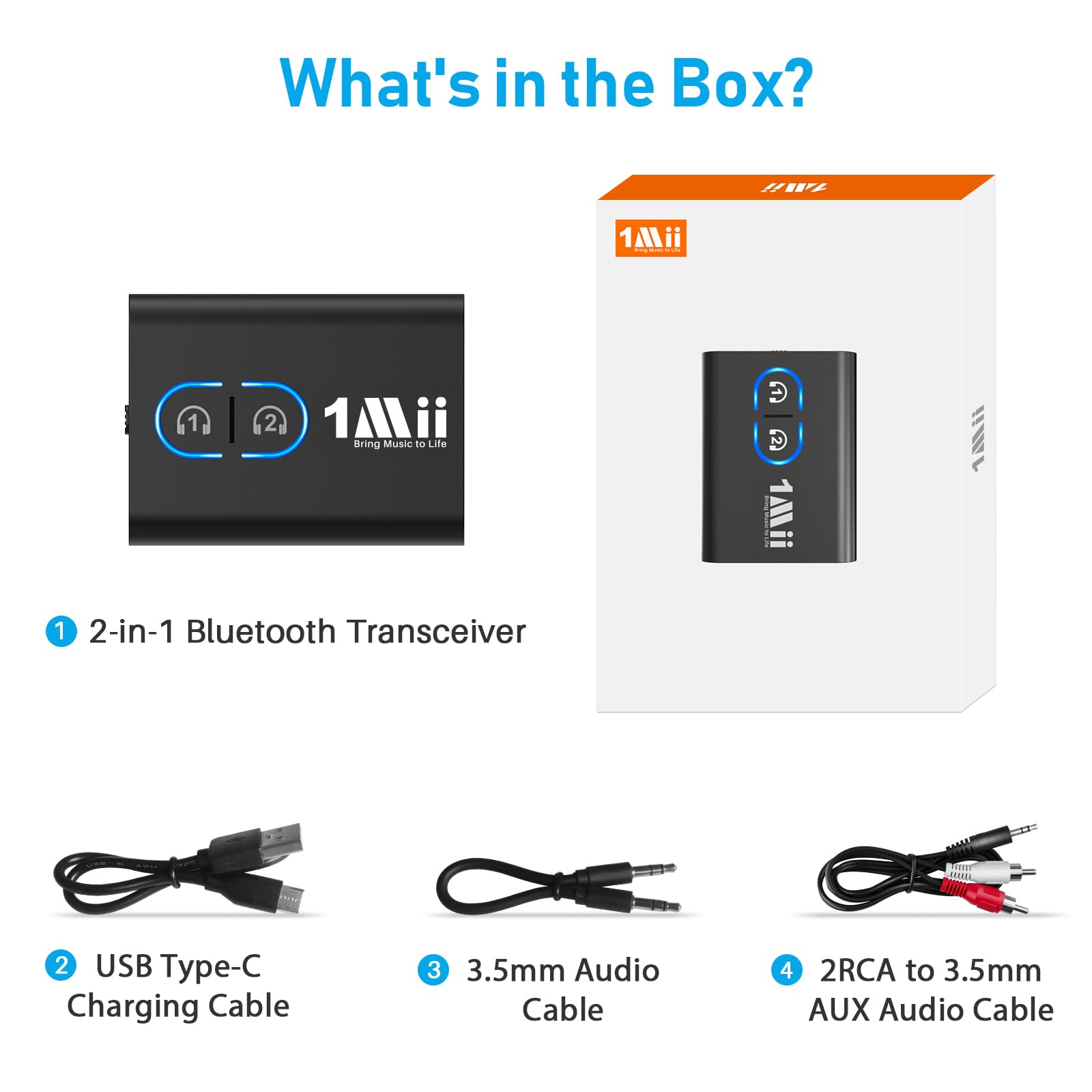 Long Battery Life: 1Mii Bluetooth receiver for home stereo deliver 18 hours in transmitter mode and up to 18 hours in receiver mode, all on one charge.