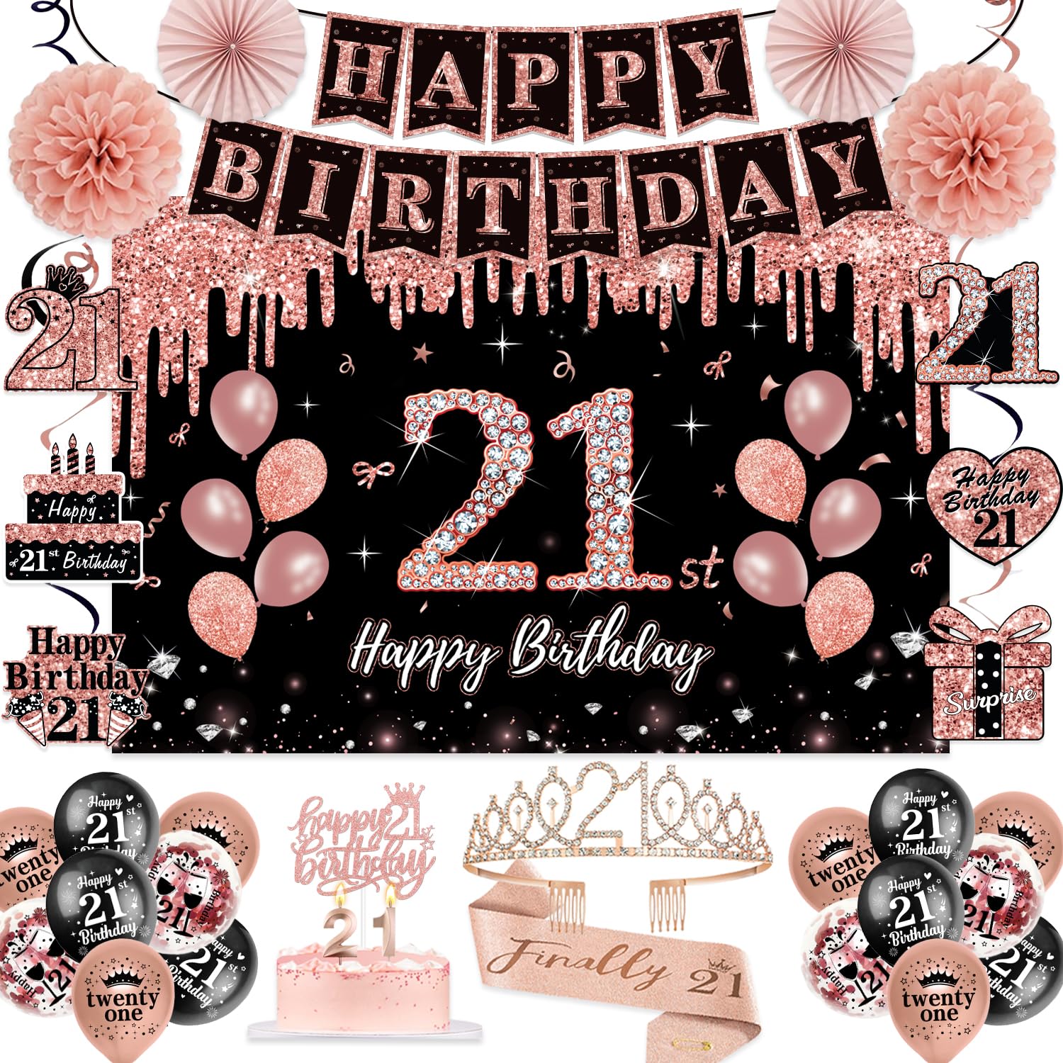 【21st Bday Theme】Our 21st birthday decorations for her feature a blend of bright colors, and a vibrant design, which are perfect for celebrating a girl's milestone birthday. Specially designed shiny banners and star-dot metallic ribbons create a stunning visual display, adding sophistication and uniqueness to this special happy 21st birthday party.