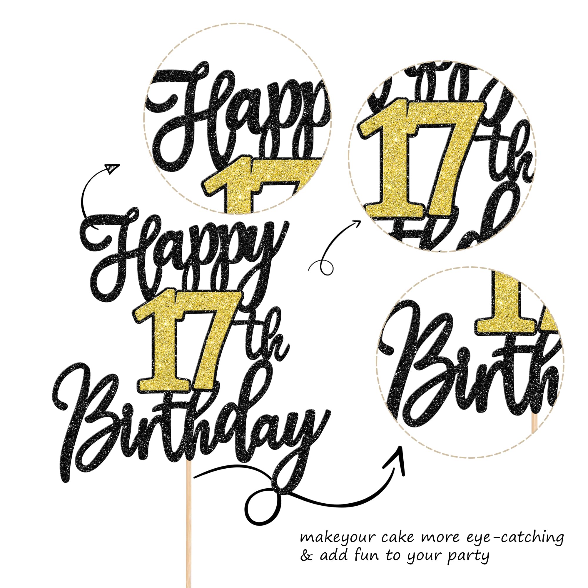 Wide Usages ! The cake topper is perfect for happy 17th birthday theme party, cheers to 17 years theme party, 17 fabulous theme party, happy 17th birthday anniversary theme party cake decorations, they can make your cake more attractive and bring the fun to your party.You can also apply them for ice cream, fruits, cookies and other desserts.