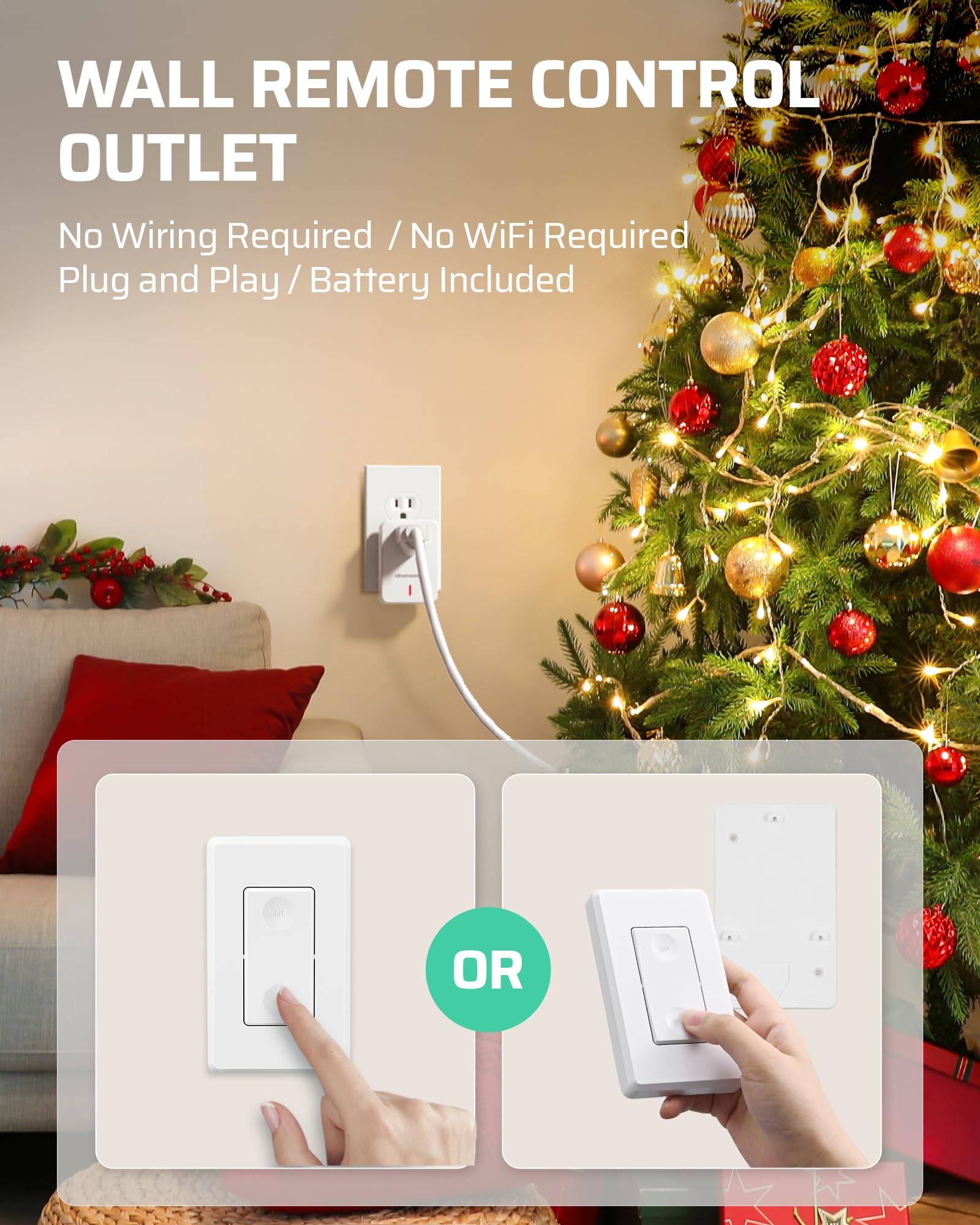 【 New Compact Design 】 Leaves the upper outlet available; smaller than most of the other indoor remote control outlets; wireless switch receiver kit can also be turned on and off manually