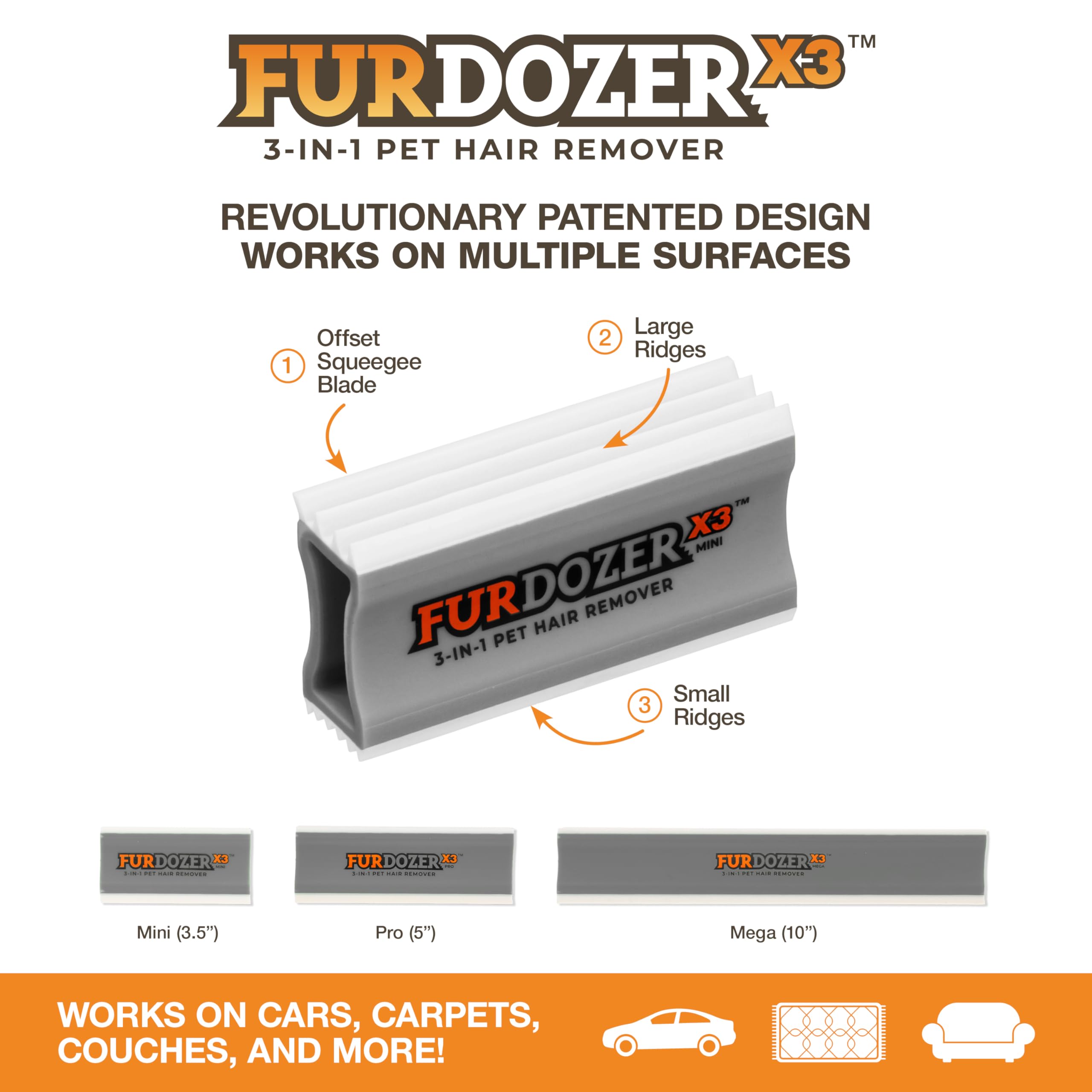 6 TOOLS IN 1 & MADE IN THE USA: The FurDozer dog and cat hair remover has 3 different squeegee blades, 2 textured pads, and 1 crevice tool. Having all these different edges makes the FurDozer your all-in-one pet hair removal tool and car detailer. The FurDozer is designed and MADE IN THE USA!