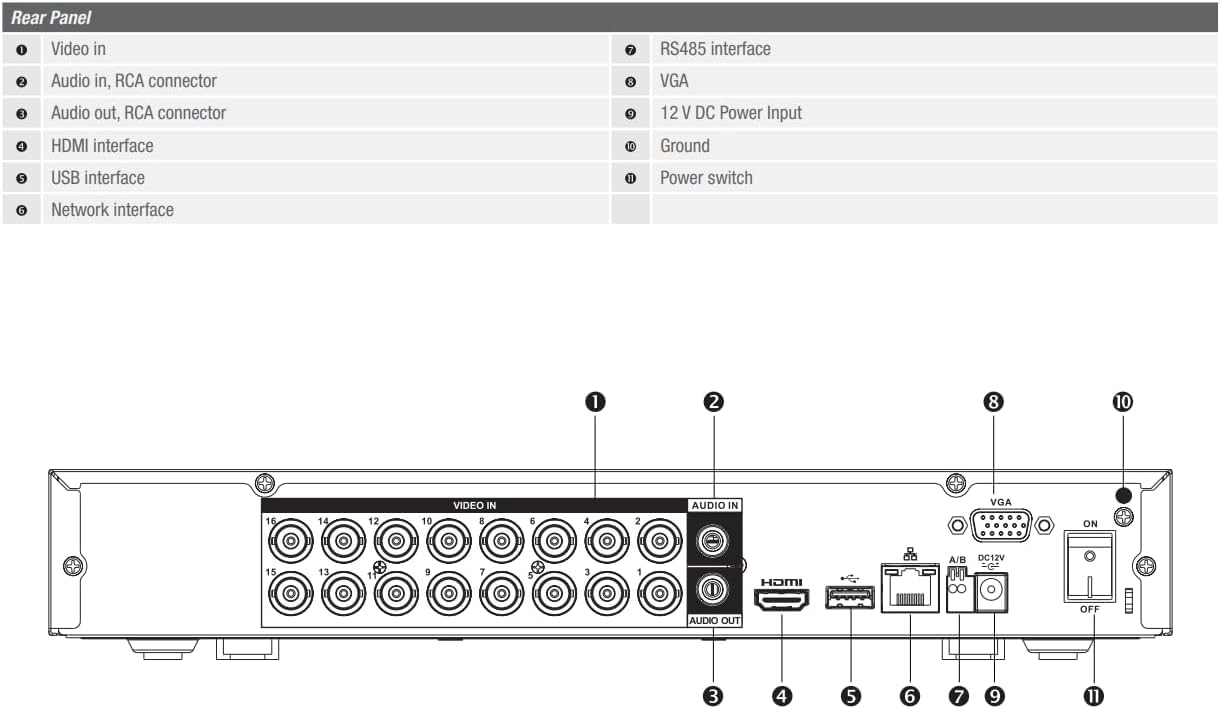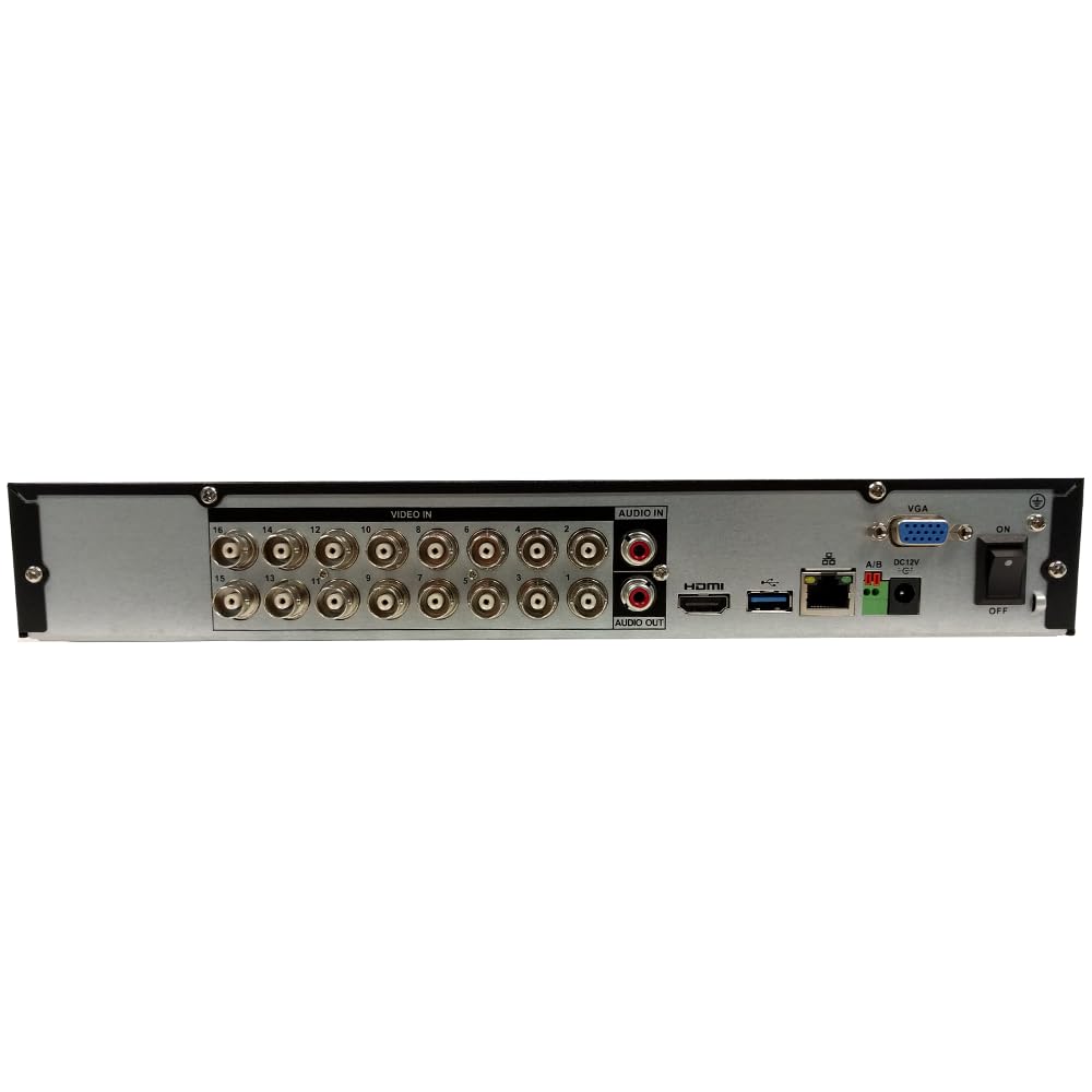 16 Channel Penta-Brid 5MP Mini 1U DVR, Support 16CH CVI/TVI/AHD/Analog up to 5MP, 8CH Additional IP up 6MP, 1 SATA HDD Slot, HDMI/VGA Output Digital Video Recorder 1000GB HDD Installed.