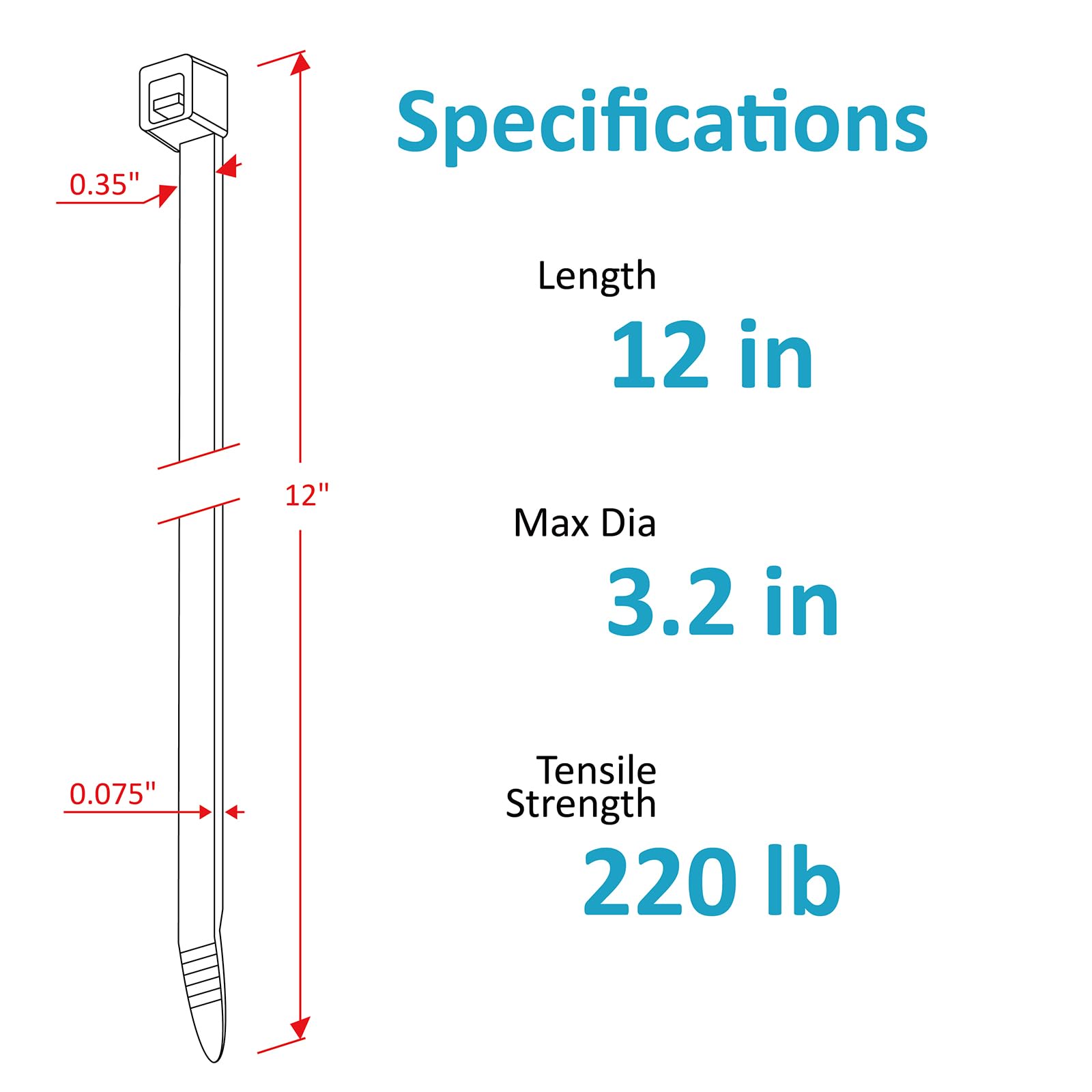 Ultra Heavy Duty: 12" cable ties provide 220 lb tensile strength, making them perfect for heavy-duty use